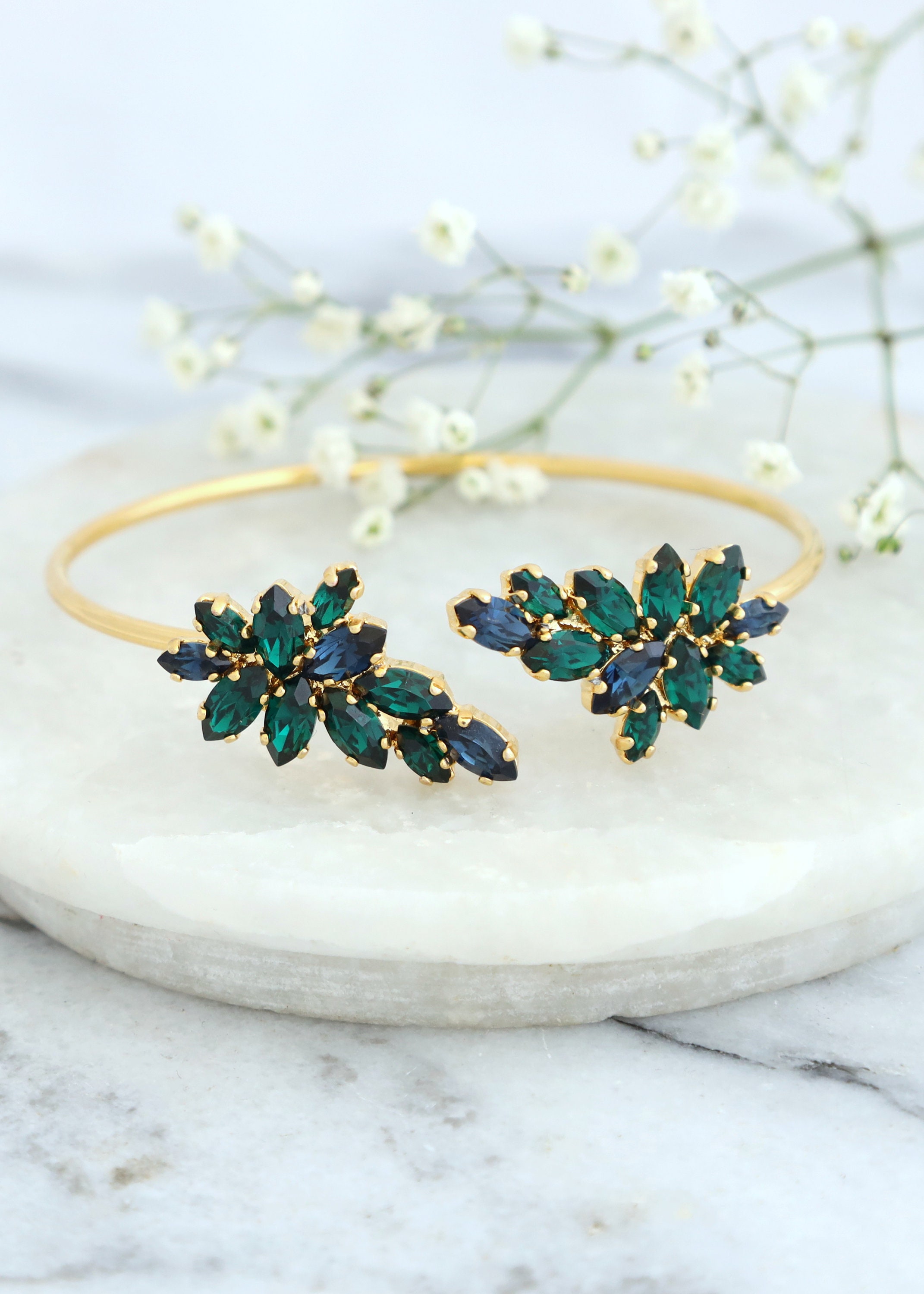 "Green Emerald Blue Navy Open Cuff Crystal Bracelet - This beautiful Emerald Green crystal brac...