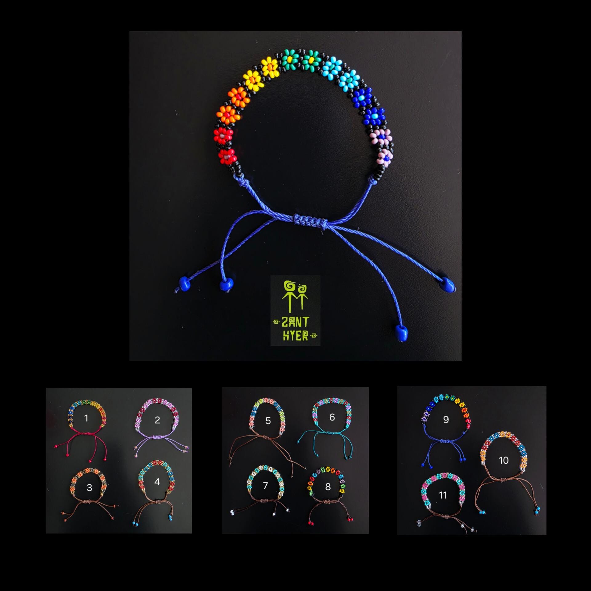 Mexican Beaded Flower Bracelet: Adjustable Friendship Jewelry, Frie...