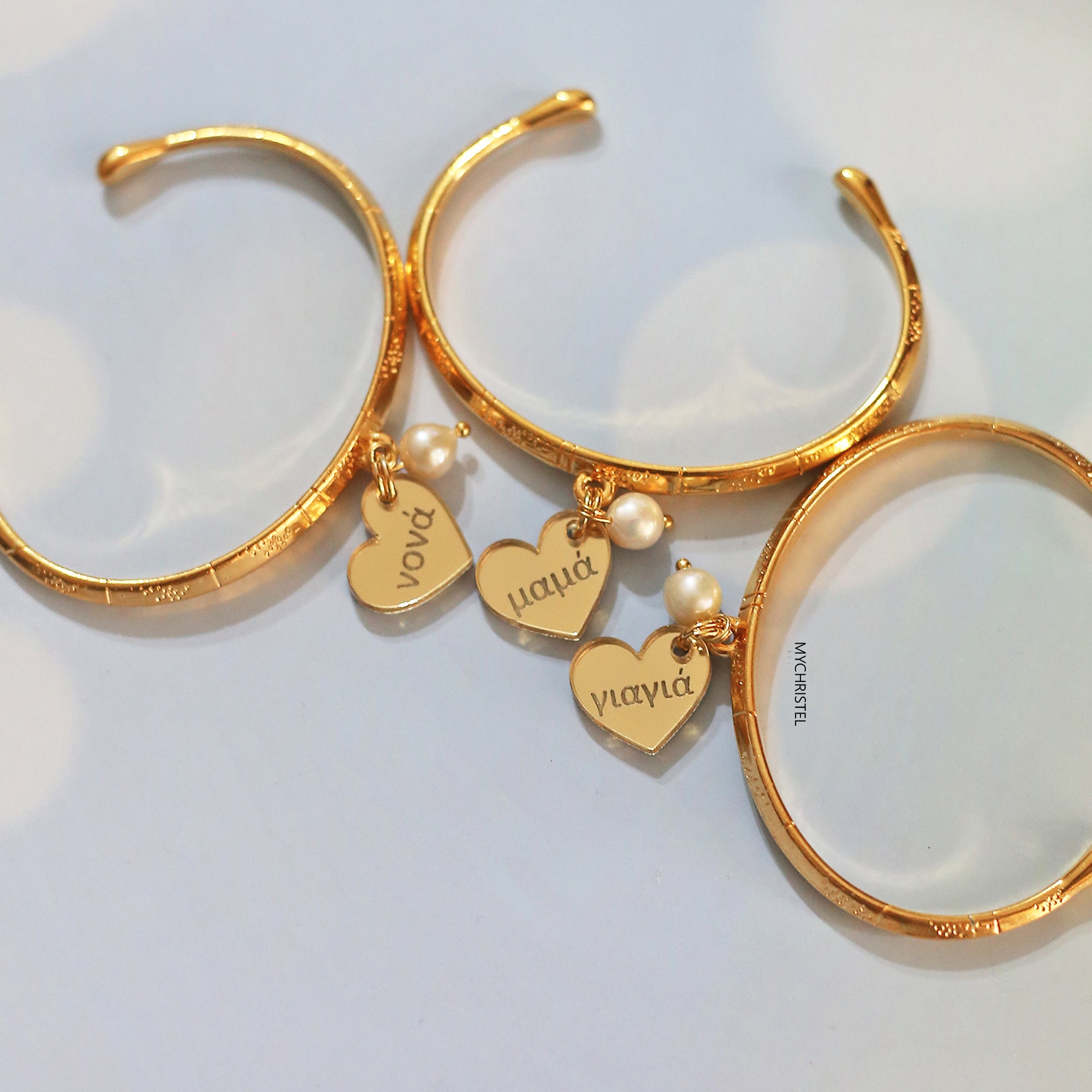 *Gold plated metallic bangle *Brass base *Heart plexiglass: mother, grandmother, godmother or theia ...