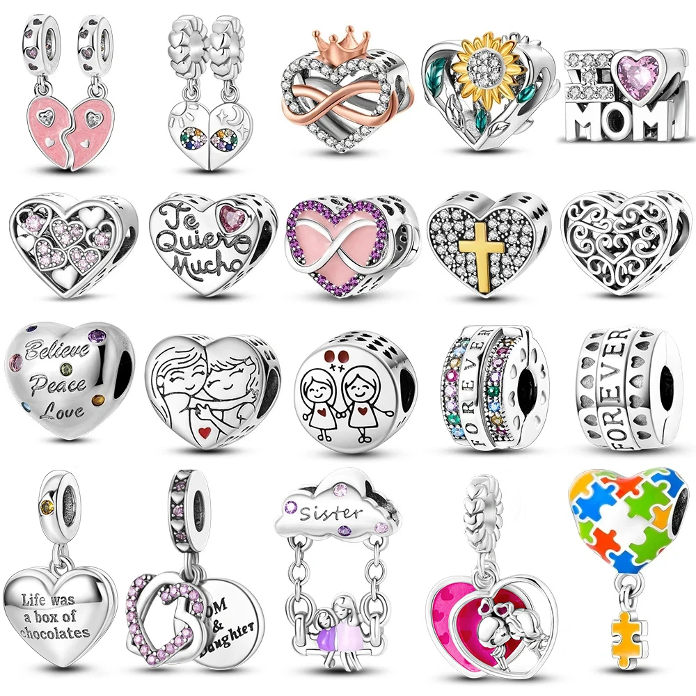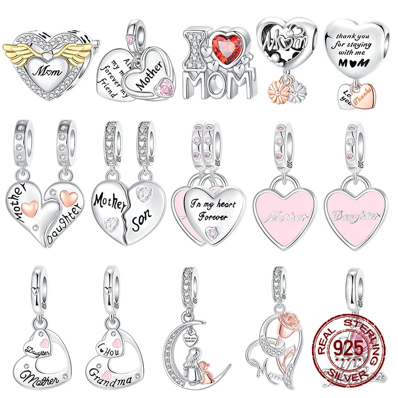 925 sterling silver original mother daughter best friend charm beads DIY bracelet necklace engagemen...