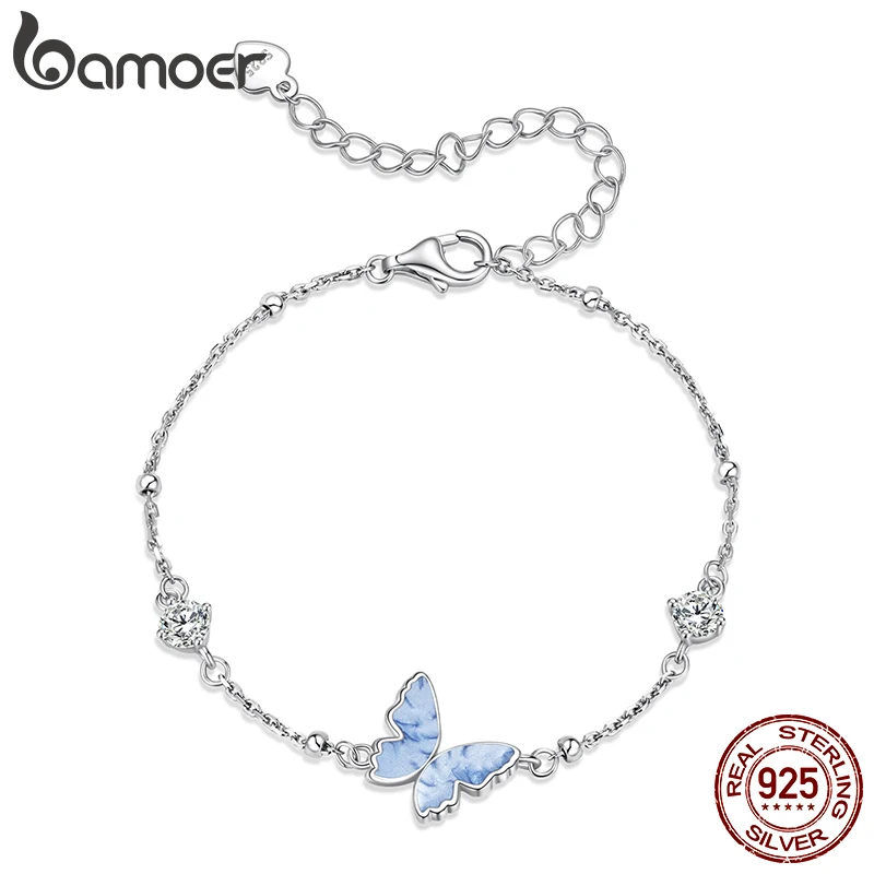 Bamoer 925 Sterling Silver Blue Butterfly Bracelet for Women Girls ...