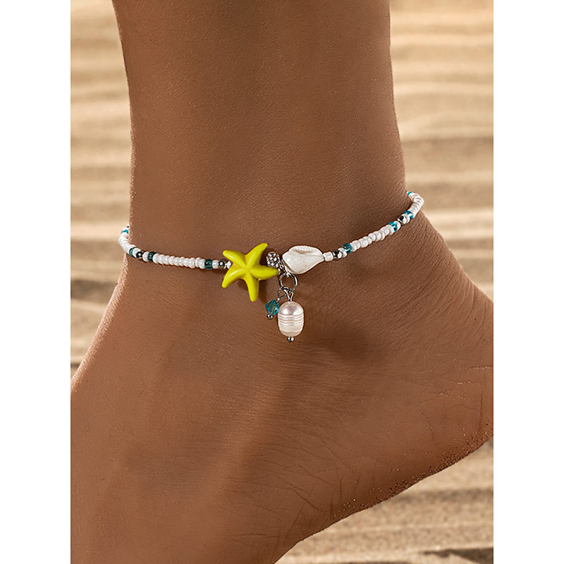 Women's Bohemian Starfish Beaded Anklet – Adjustable Beach Sh...
