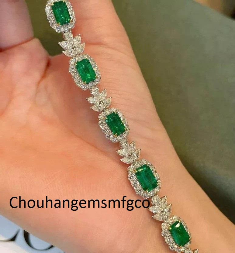 Tennis Bracelet Lab Created Emerald, 925 Sterling Silver Emerald Cu...