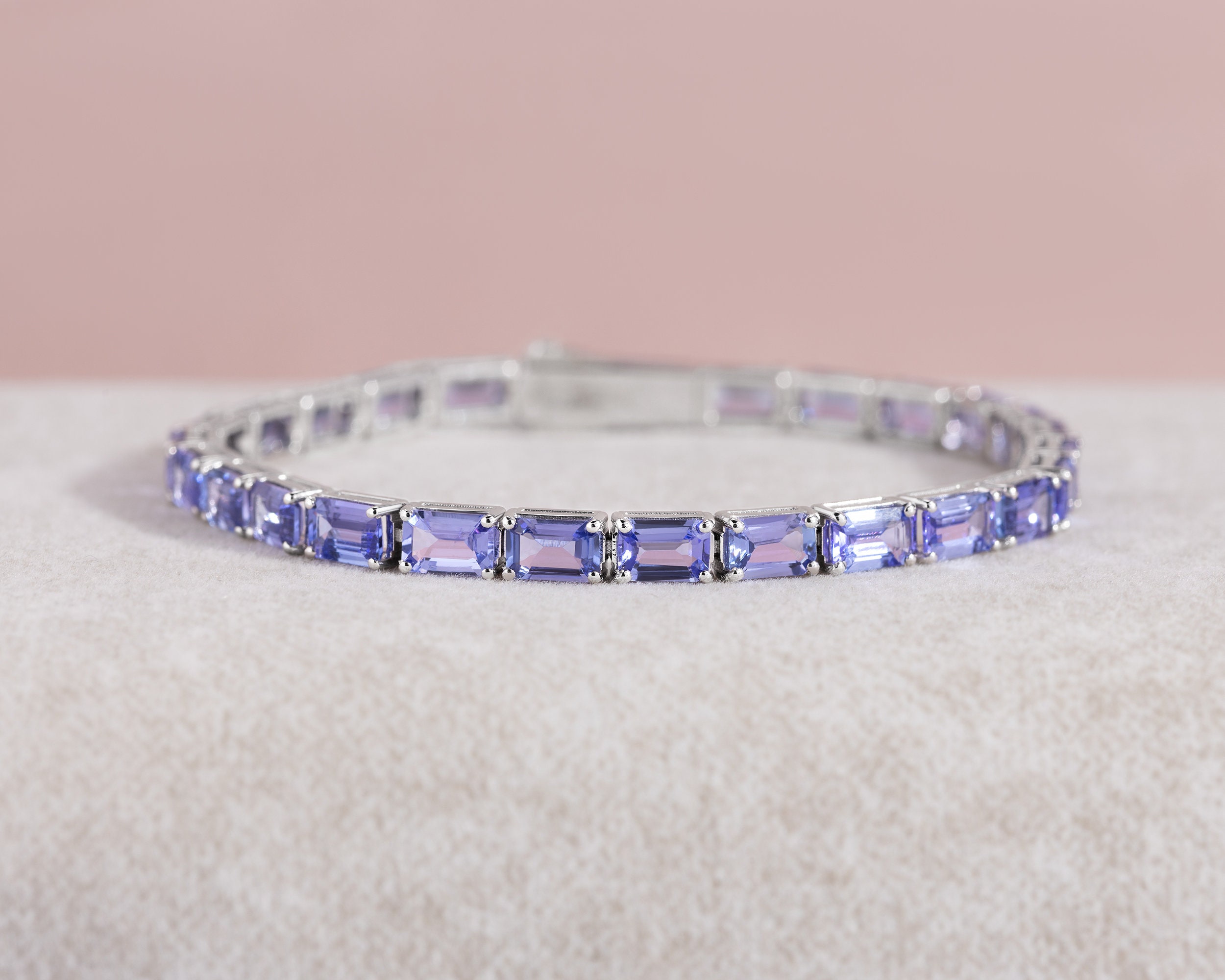 Genuine Blue Tanzanite Bracelet, Tennis Emerald Cut Baguette Gold W...