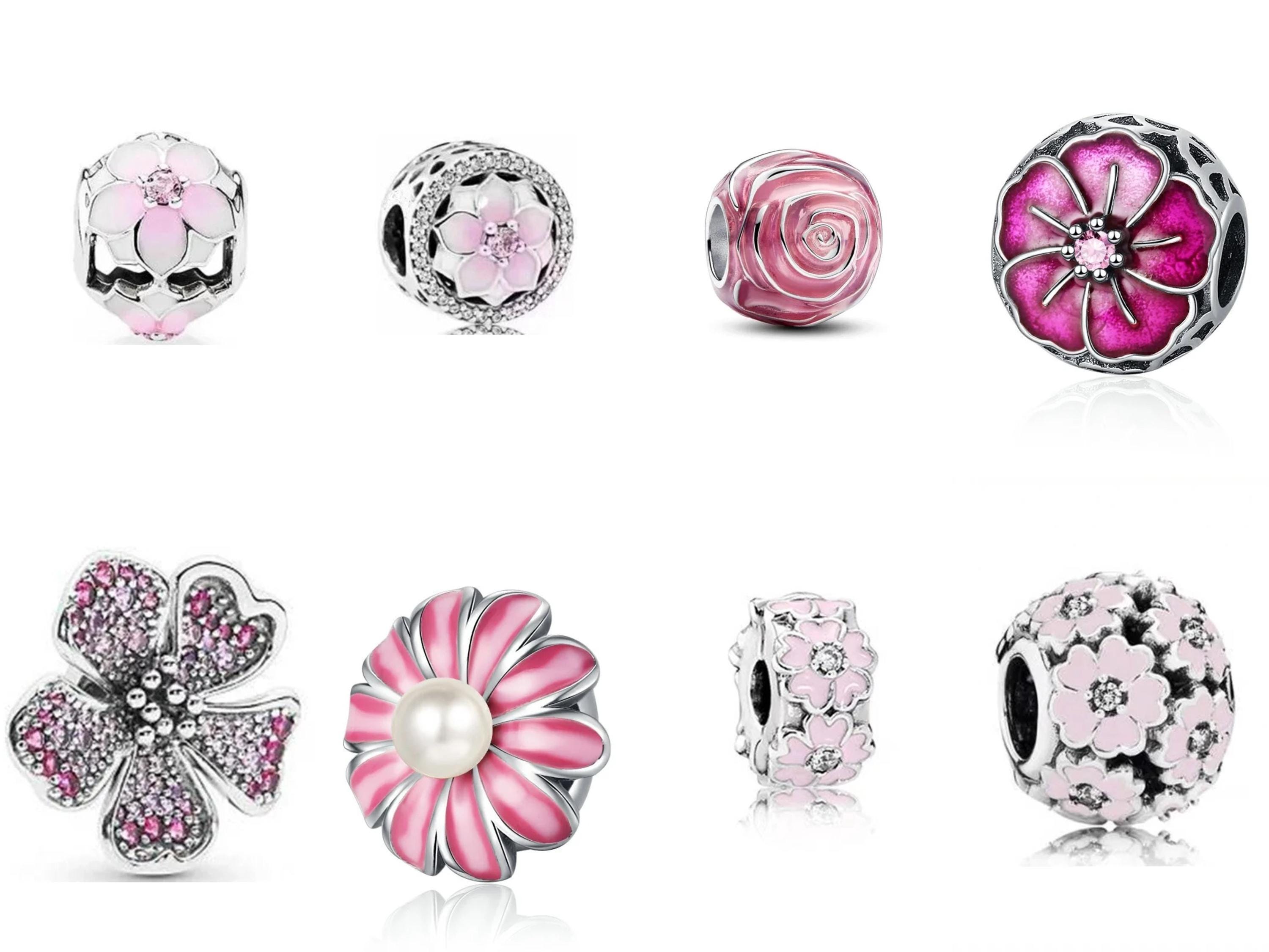 Silver Charms Sparkling Pink Flowers Series Cherry Blossom Daisy Br...
