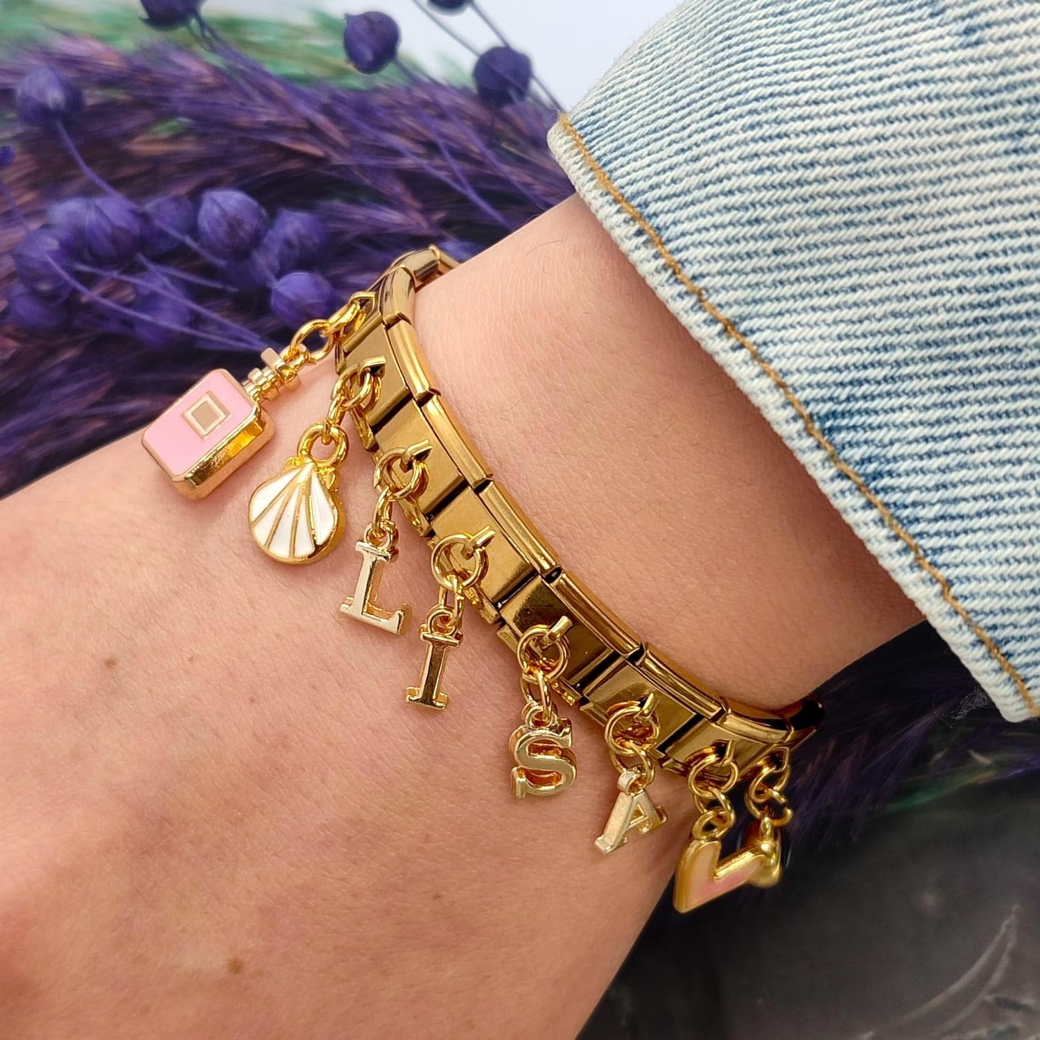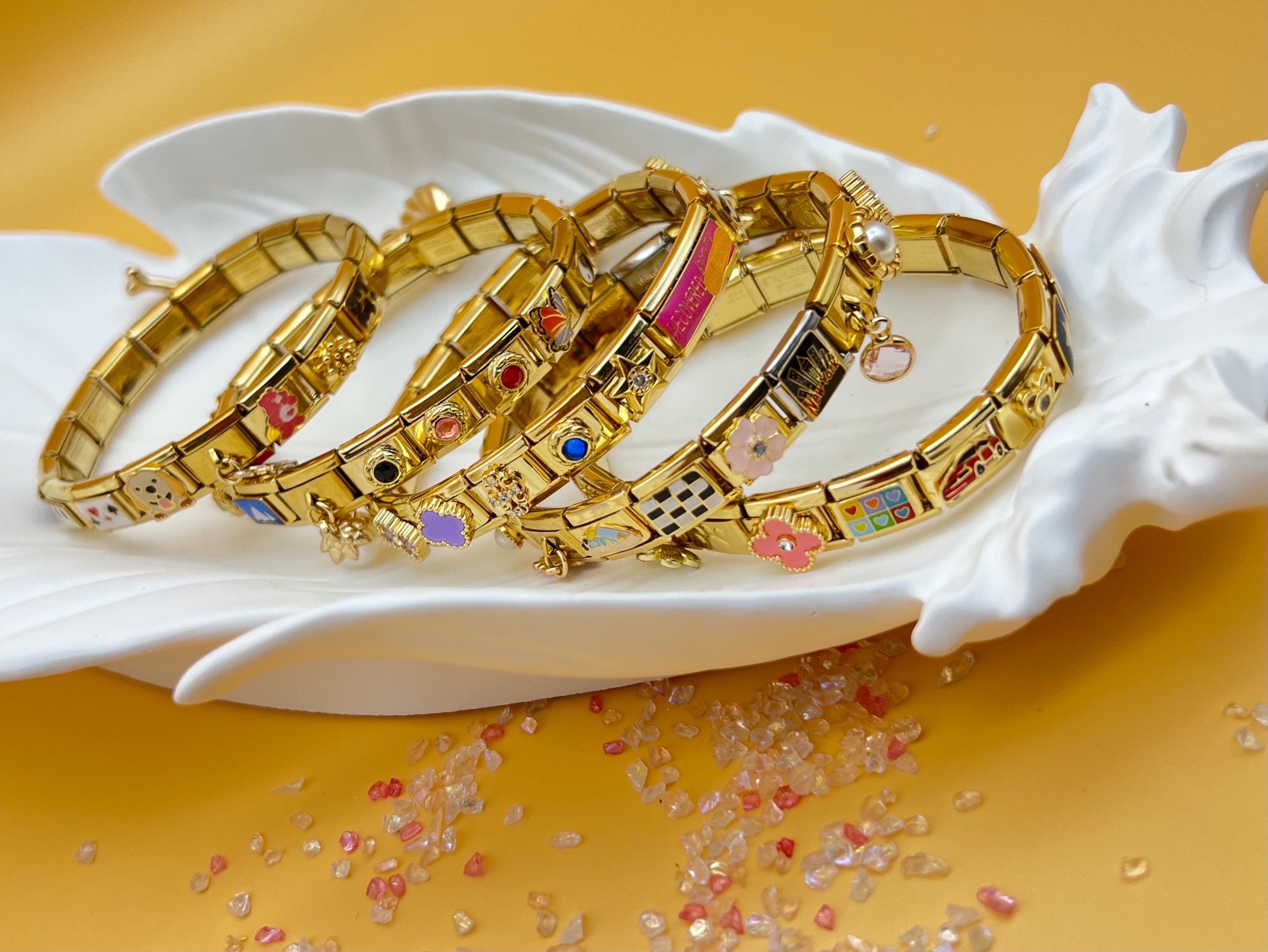 Personalized Italian Charm Bracelet, Custom Italian Gold Charm, Ita...