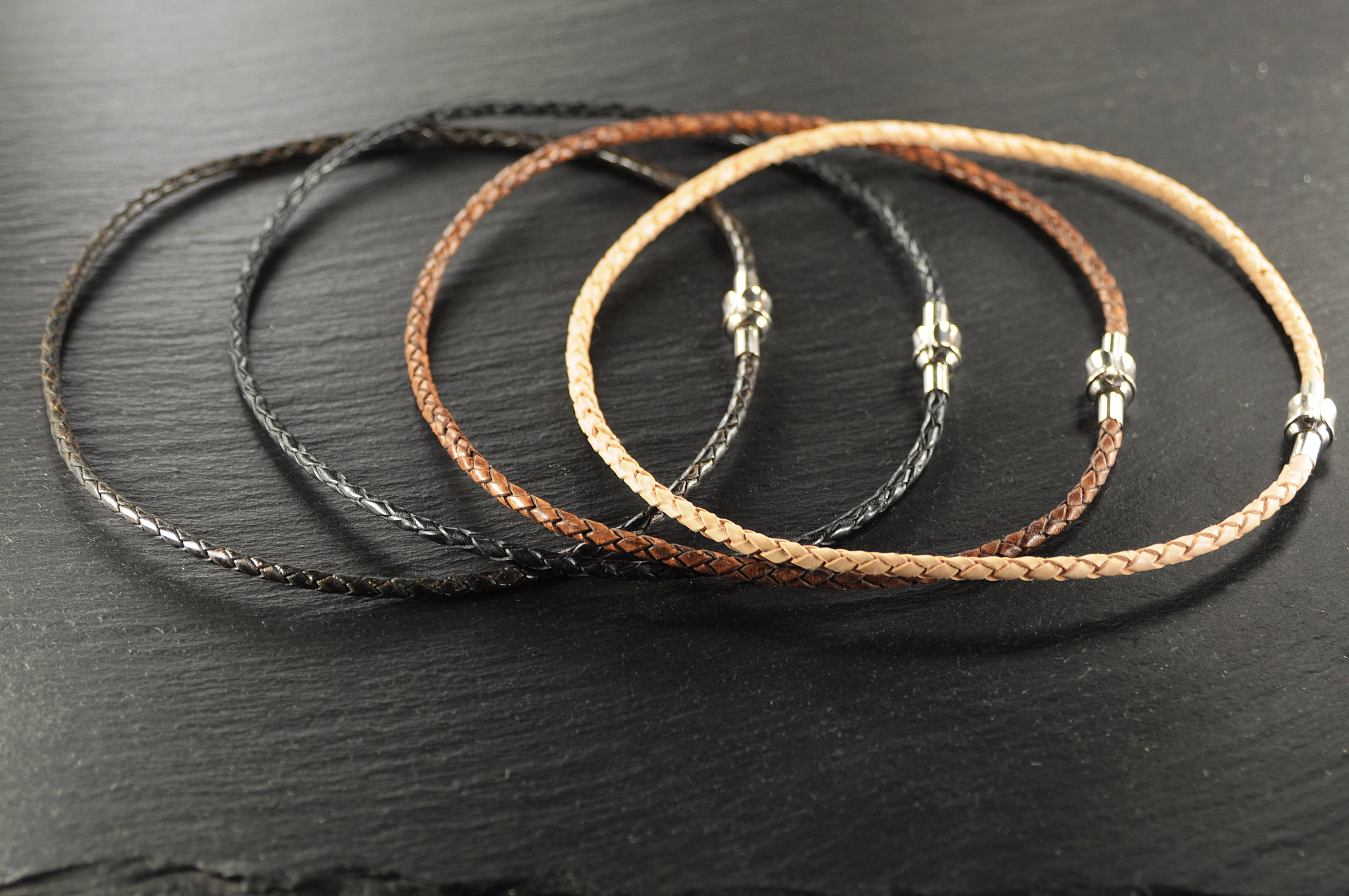3mm Braided genuine leather & 316L stainless steel European cha...
