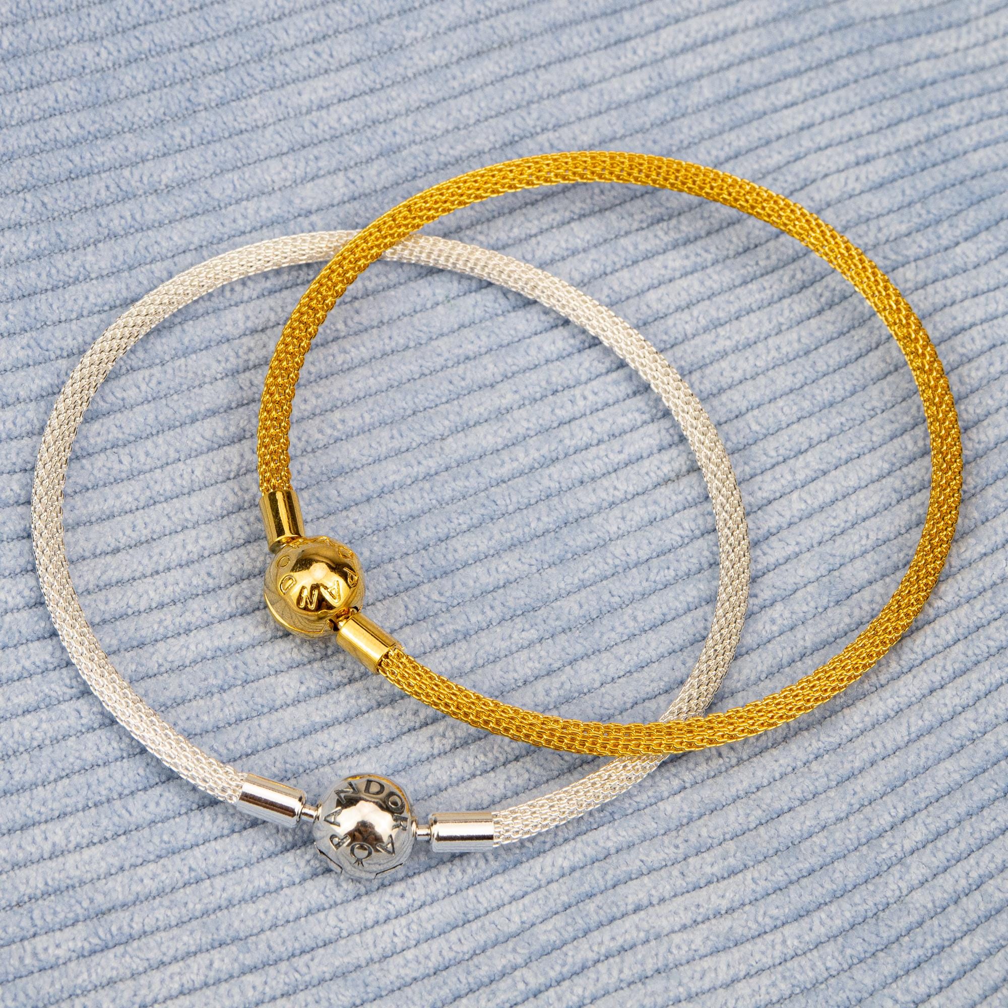 Pandora Round Clasp Mesh Charm Bracelet, S925 silver Bracelet, Exqu...