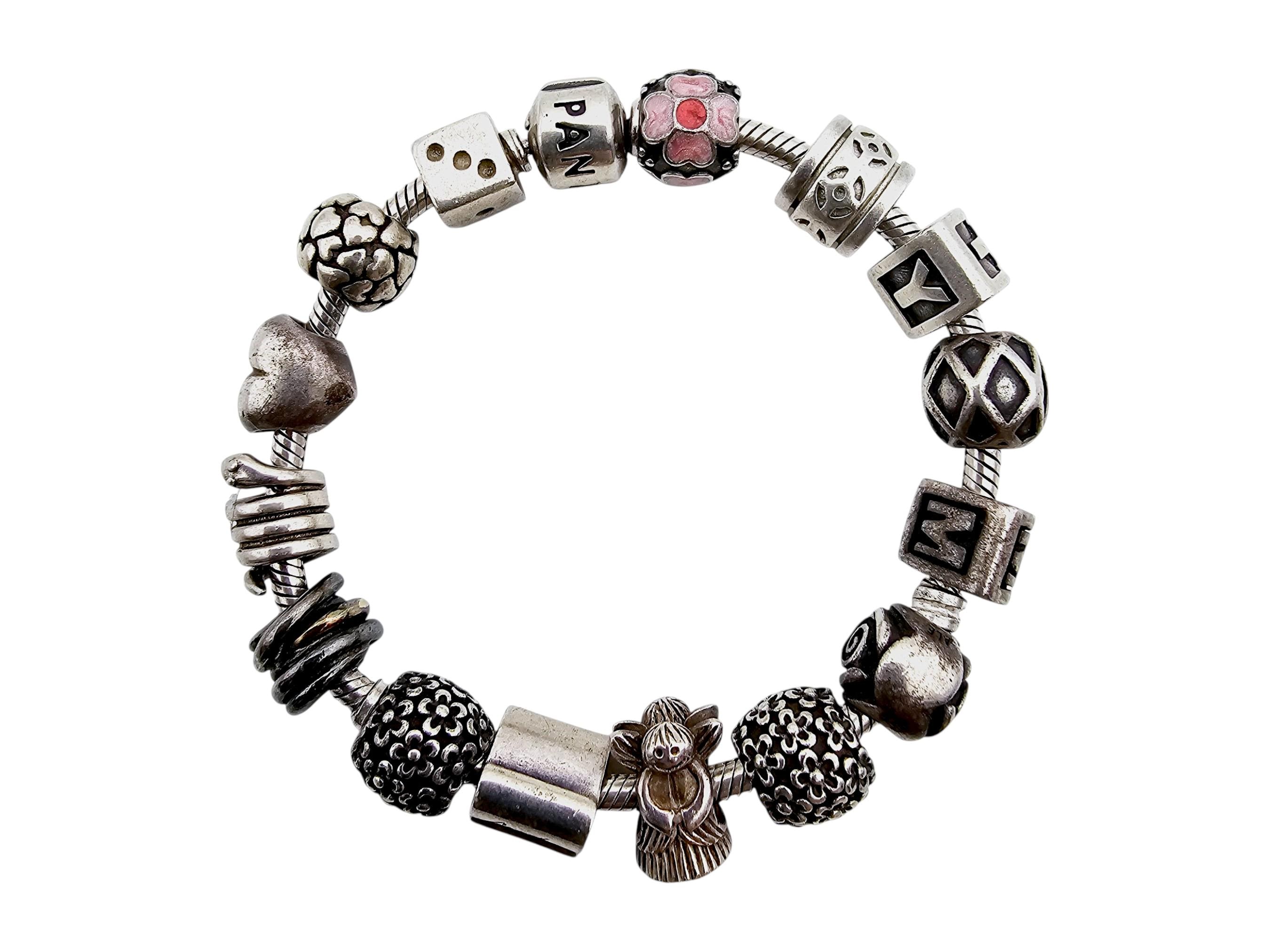 "No. 79(1.5) A stunning vintage Pandora sterling silver charm bracelet, richly adorned with a v...