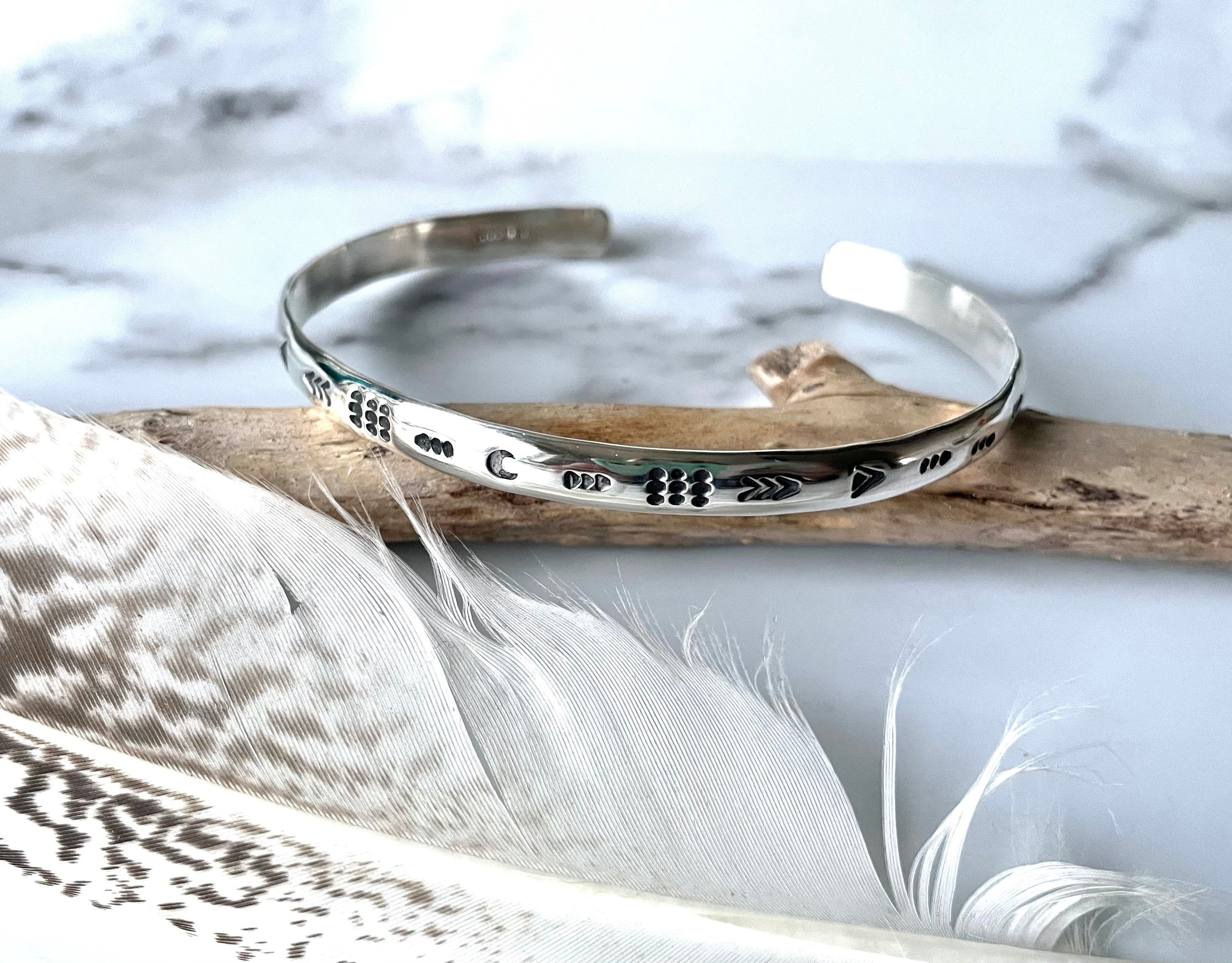 "Hand stamped Sterling silver rounded aztec cuff bracelet i️TECHNICAL INFO: Handmade in ...