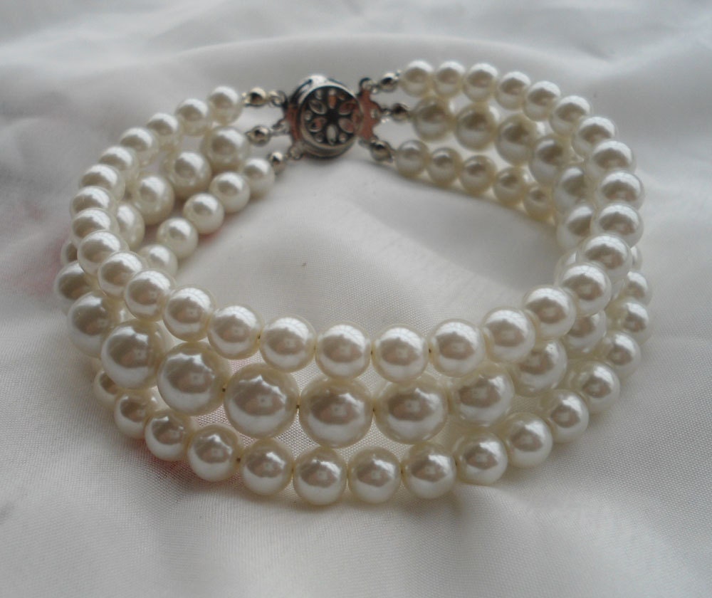 Ivory Pearl Bracelet, Pearl Bracelet,3 Strands Pearl Bracelet,,Wedd...
