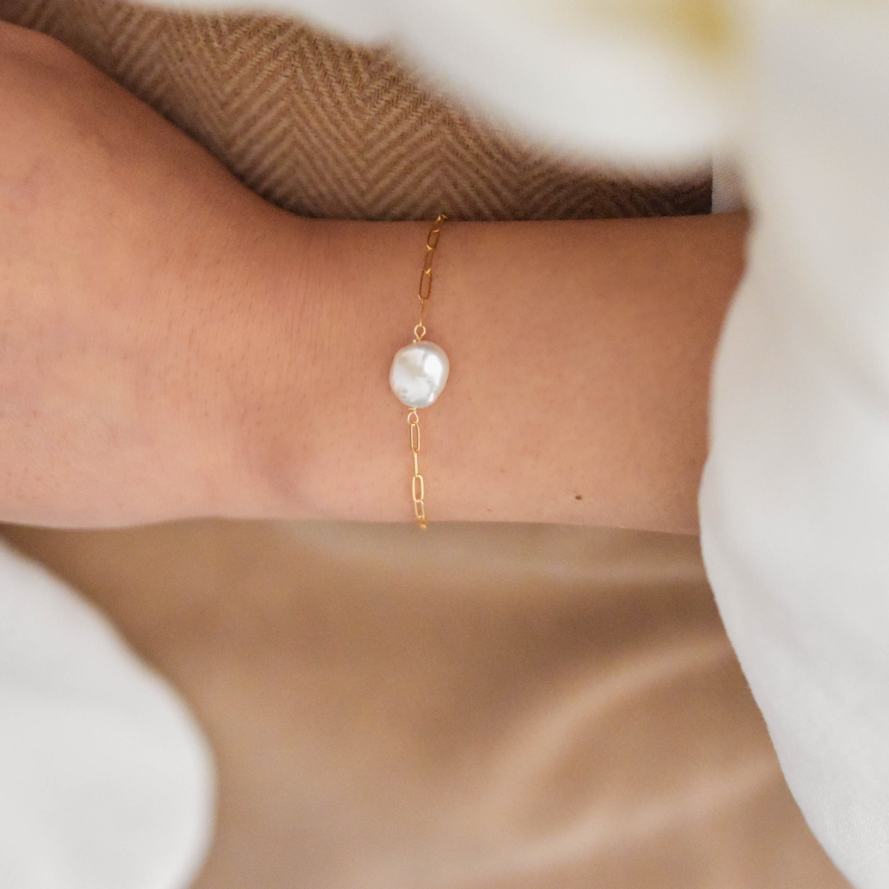 Pearl Chain Bracelet | Rose Gold Pearl Bracelet | Dainty Pearl Brac...