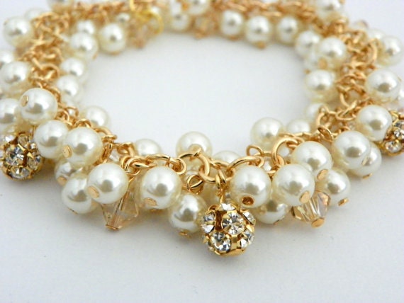 Ivory Pearl Bracelet, Pearl Cluster Bracelet, Gold Pearl Bracelet, ...