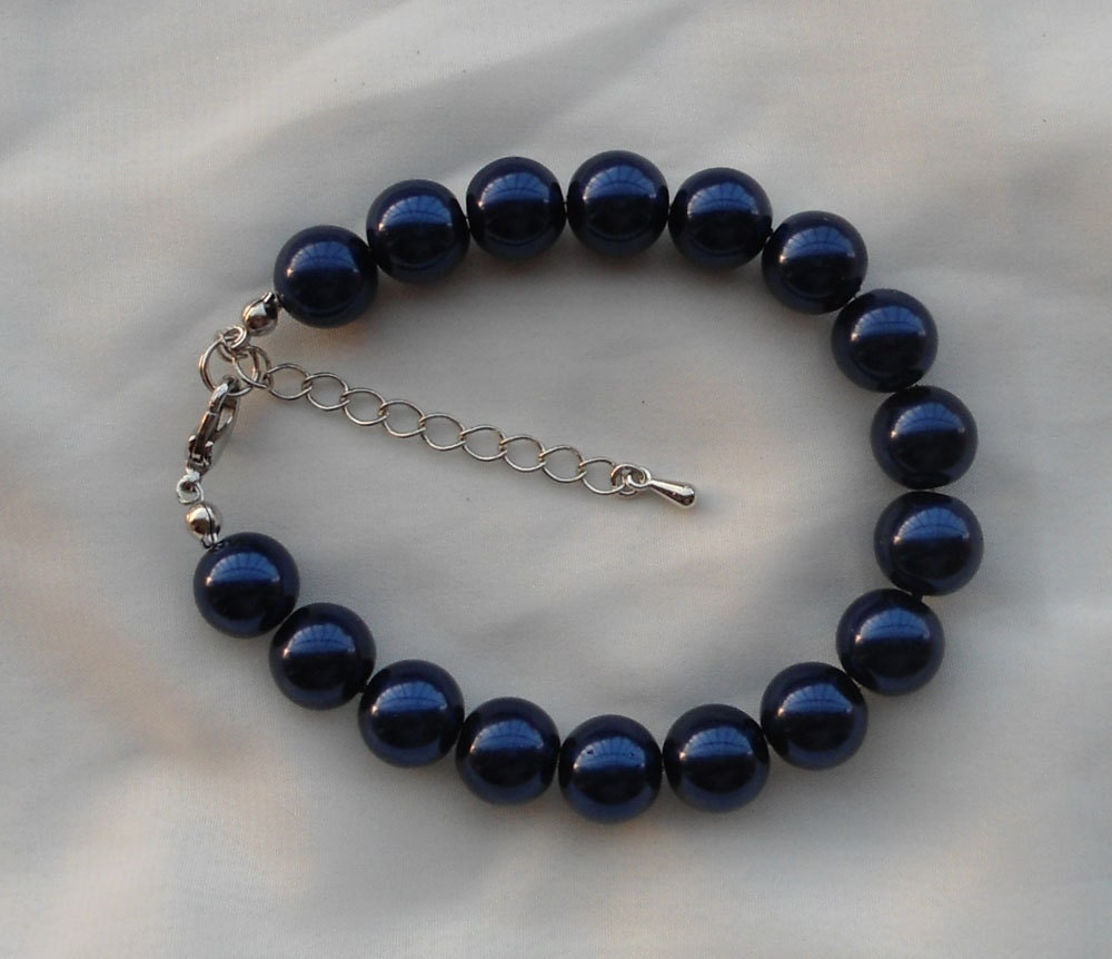 Navy Blue Pearl Bracelet,Wedding Jewelry,Pearl Jewelry,Bridesmaid B...
