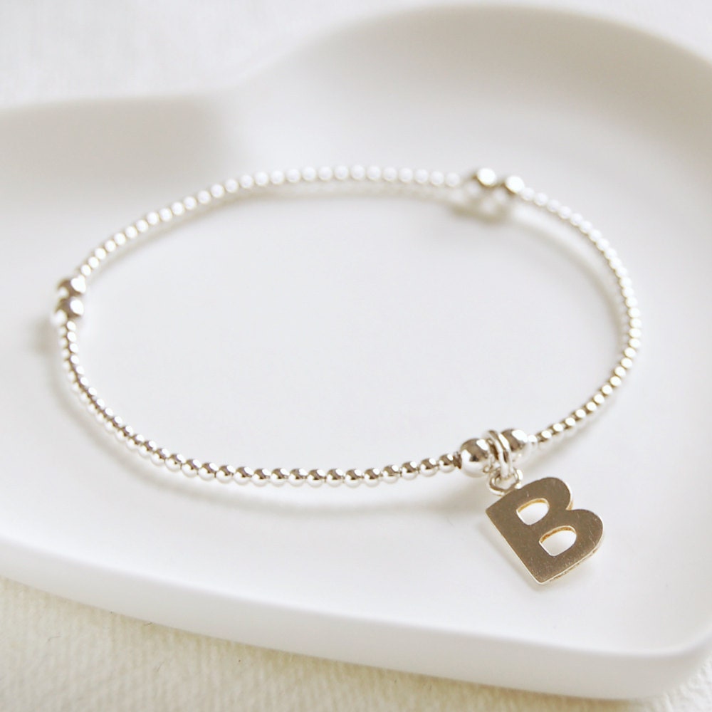Personalised Silver Initial Bead Bracelet, Silver Charm Bracelet, P...
