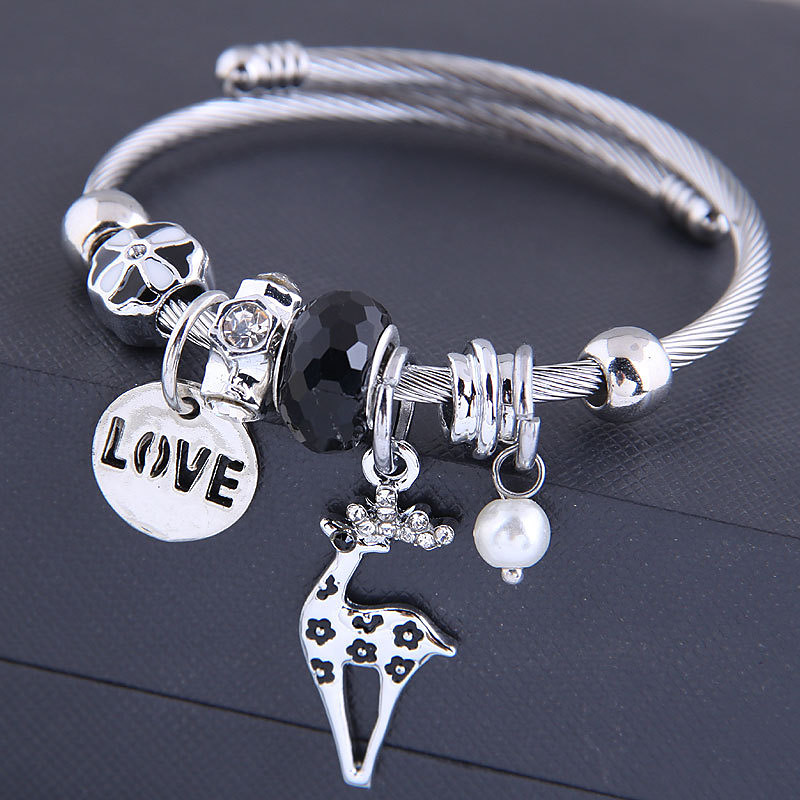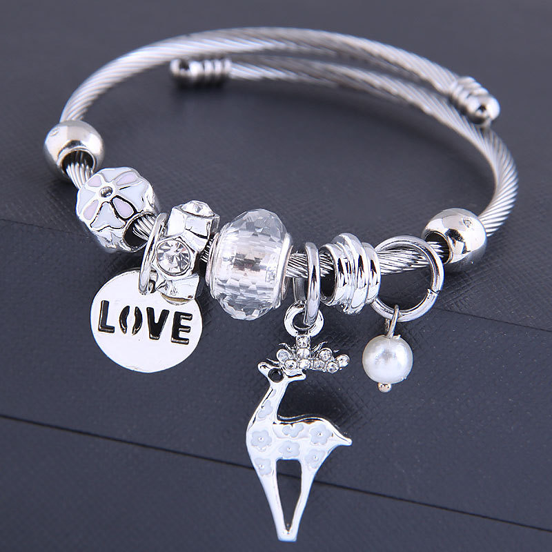 Charming Silver Bracelet with LOVE Pendant and Reindeer Charm, Adju...