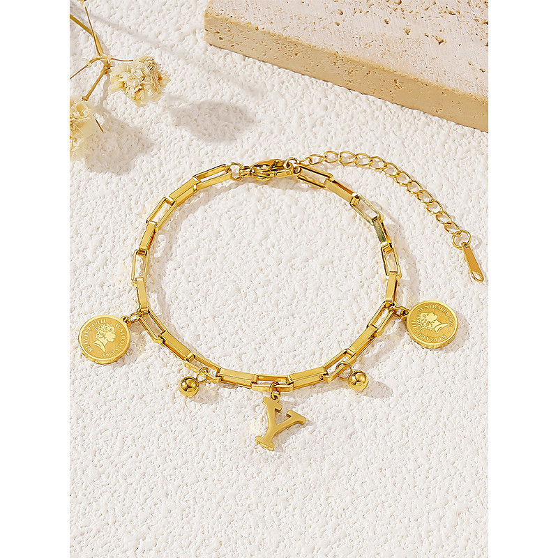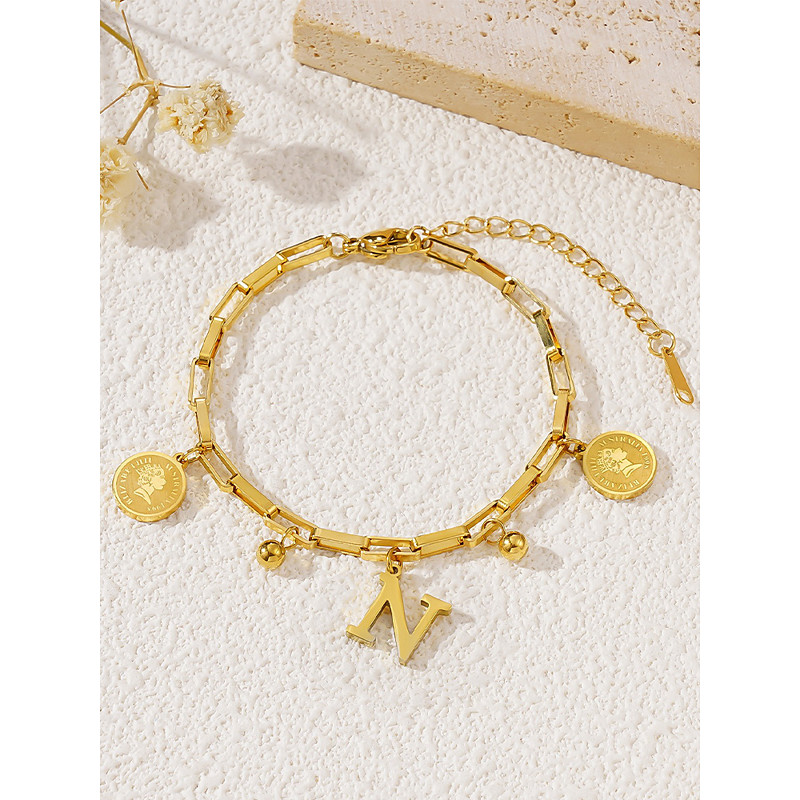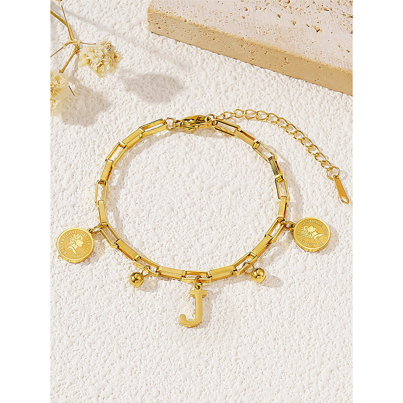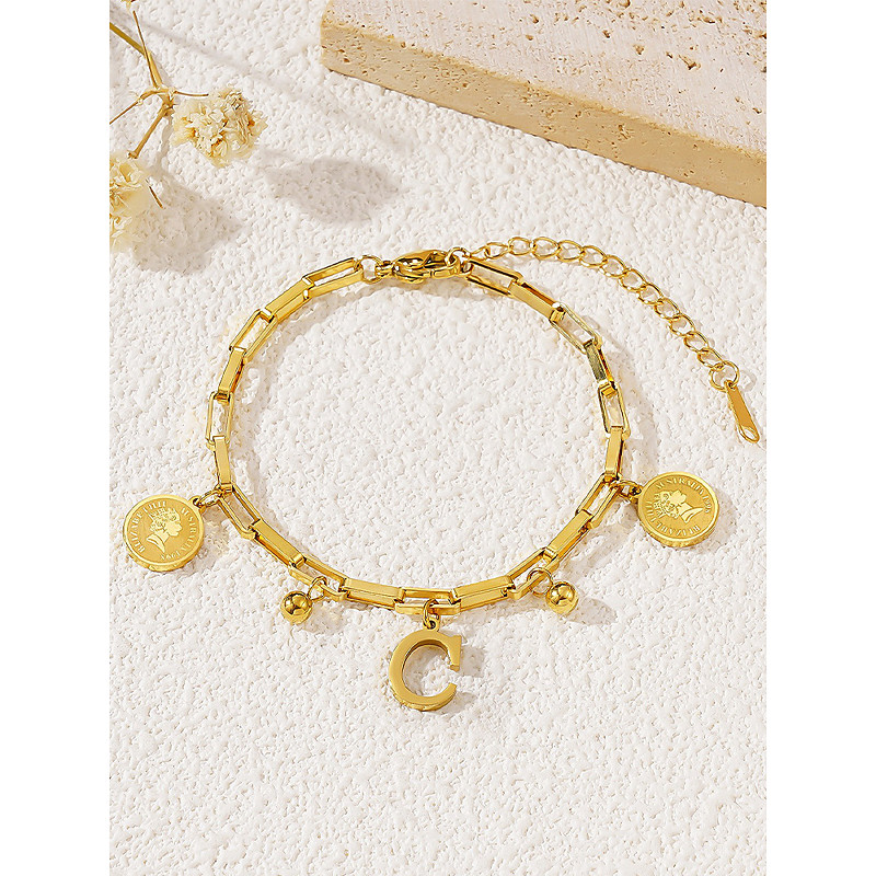 Women's Gold-Plated Alphabet Letter Bracelet with Coin and Ball Cha...