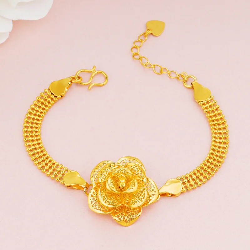 24K Gold AU999 Hollow Rose Flower Bracelet Women - Premium pure gol...