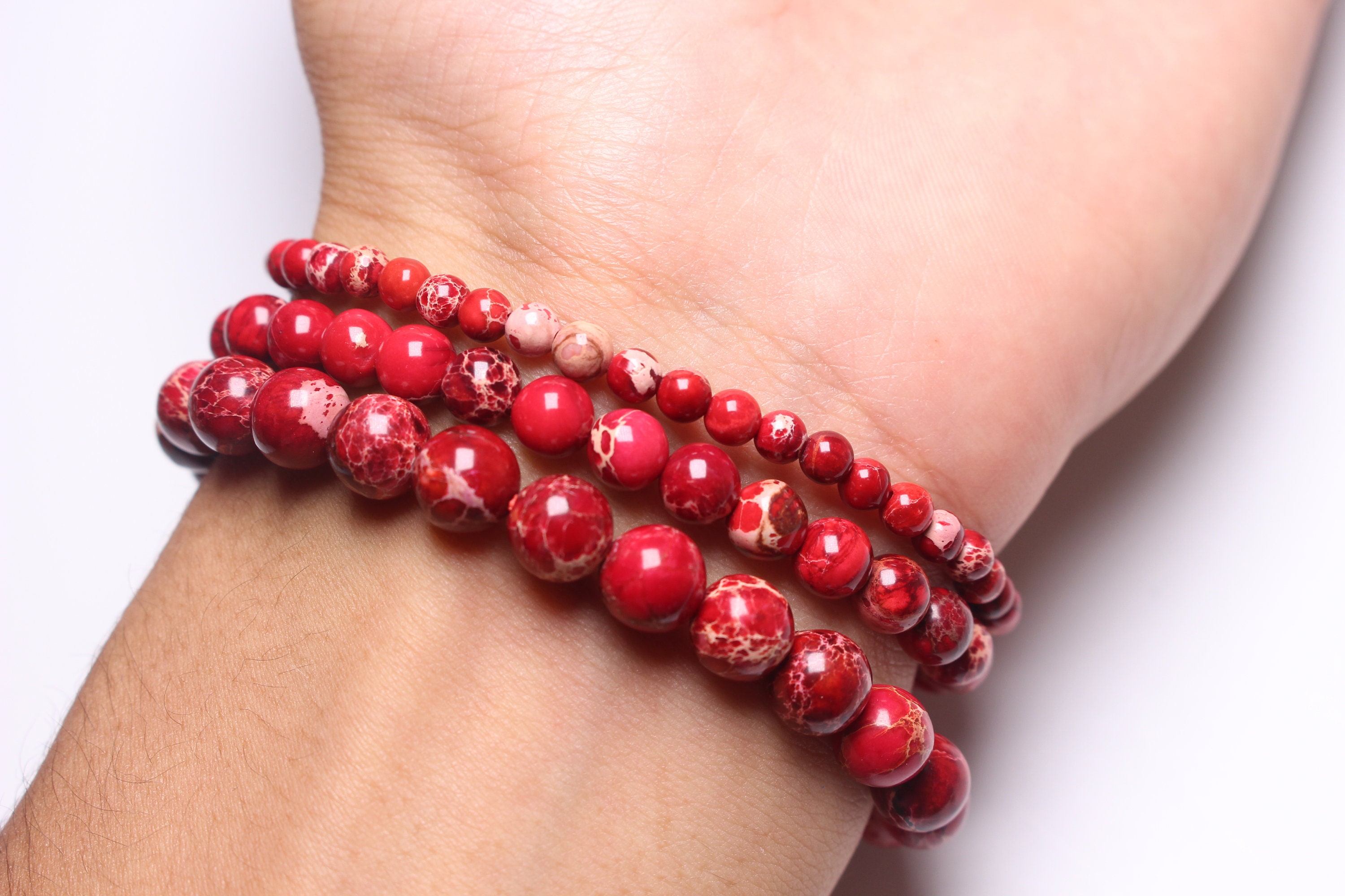 Red Imperial Jasper Mixed Bracelet in Natural Stone: Colors: Red Bead Diameter: 4/6/8 mm Standard Br...