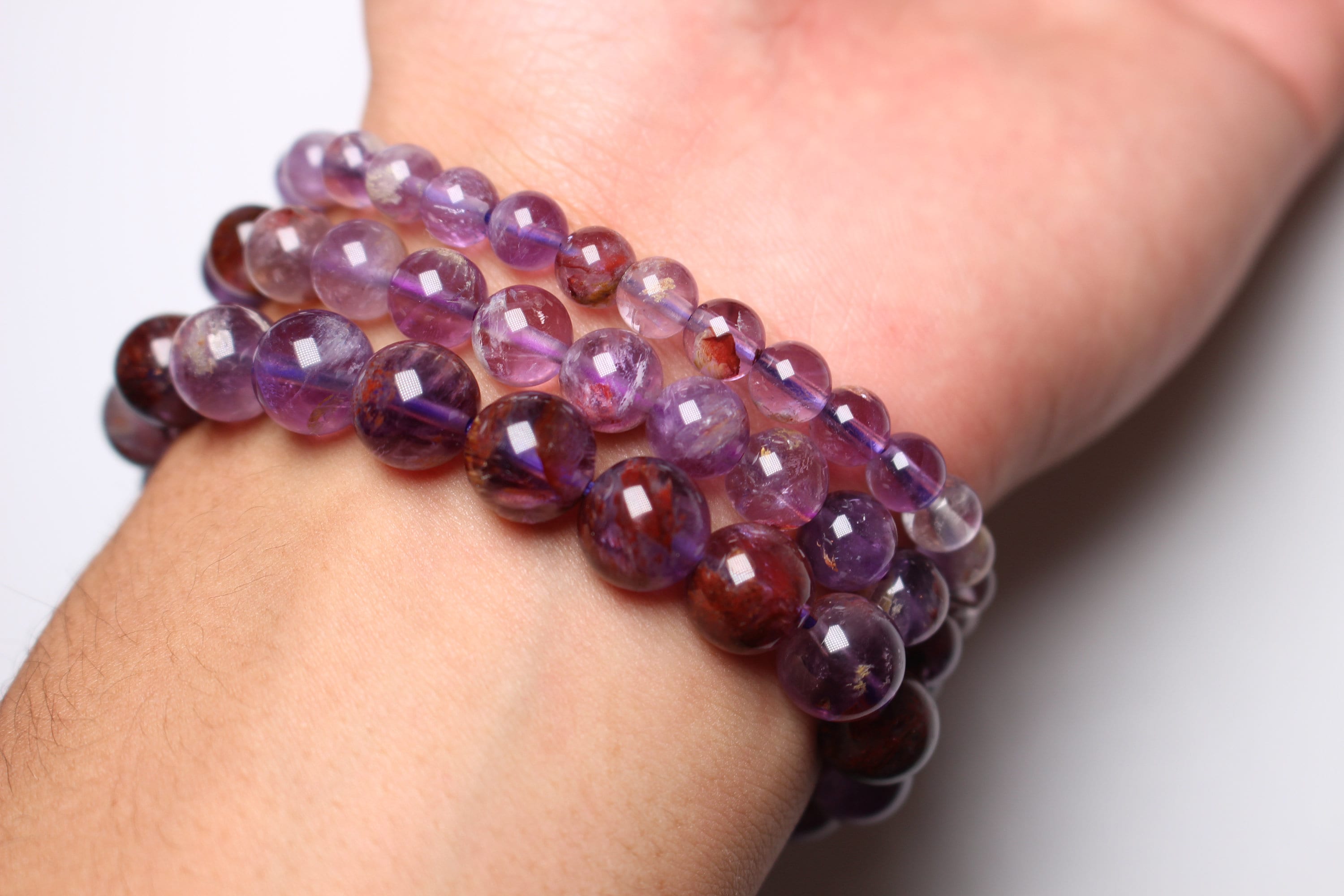 Super 7/amethyst cacoxenite bracelet in natural pearls 6/8/10 mm 18...