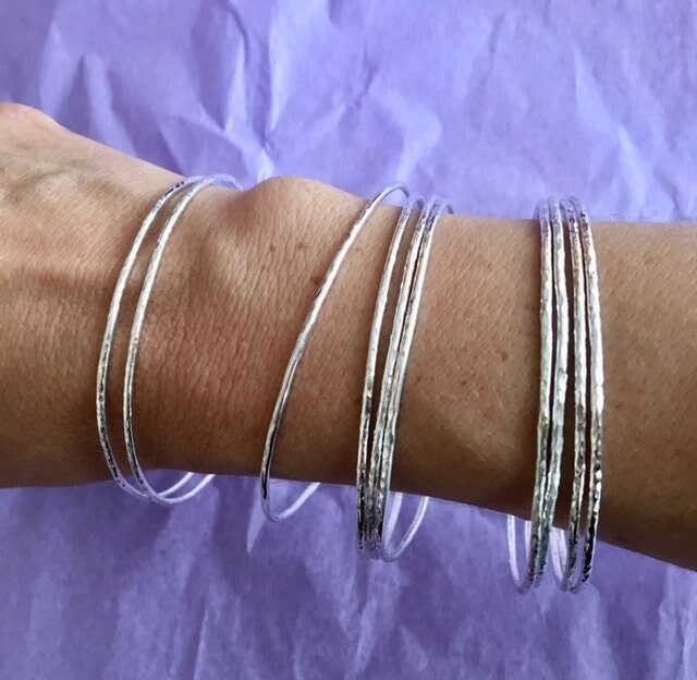silver bangle bracelet ,thin silver bangles ,handmade bracelet ,ham...