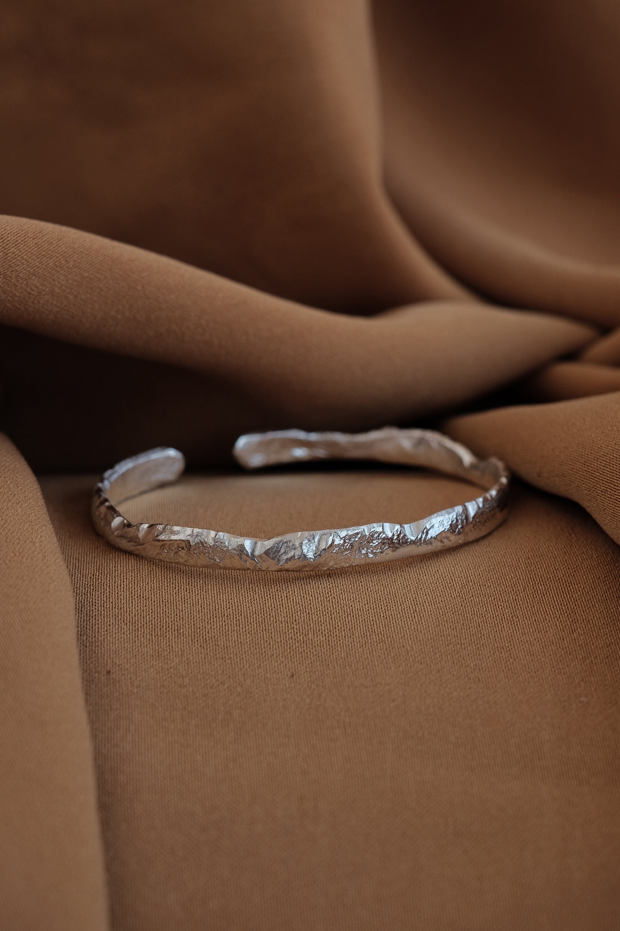 "Hammered silver bangle bracelet, Solid silver bangle, Open bangle bracelet silver arm cuff Org...