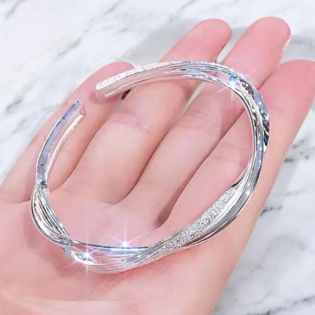 925 Sterling Twisted Silver Bangle Bracelet, Silver Bangle, Bracelets for Women, Adjustable Silver B...