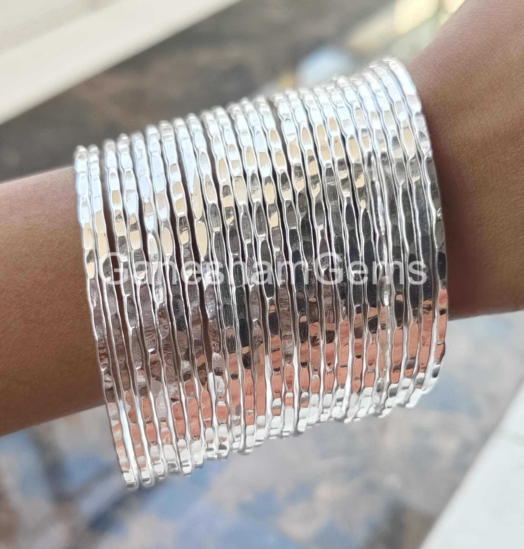 Hammered Silver Bangles, 12 Set of Bangles, Bangles For Women, Ster...