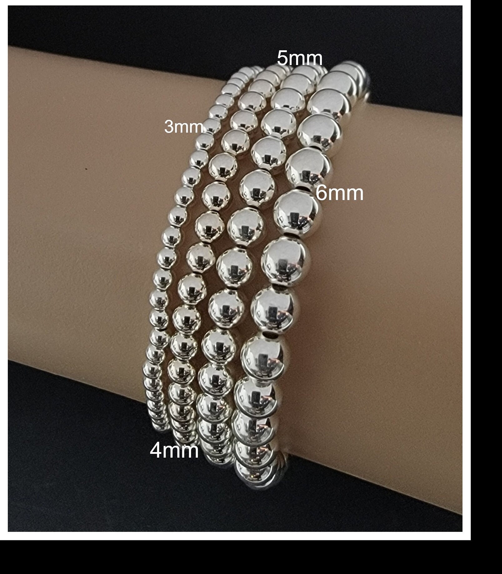 "Sterling Silver Round Beaded Stretch Bracelets - Choose from 4 size beads, 6, 5, 4, 3mm beads ...