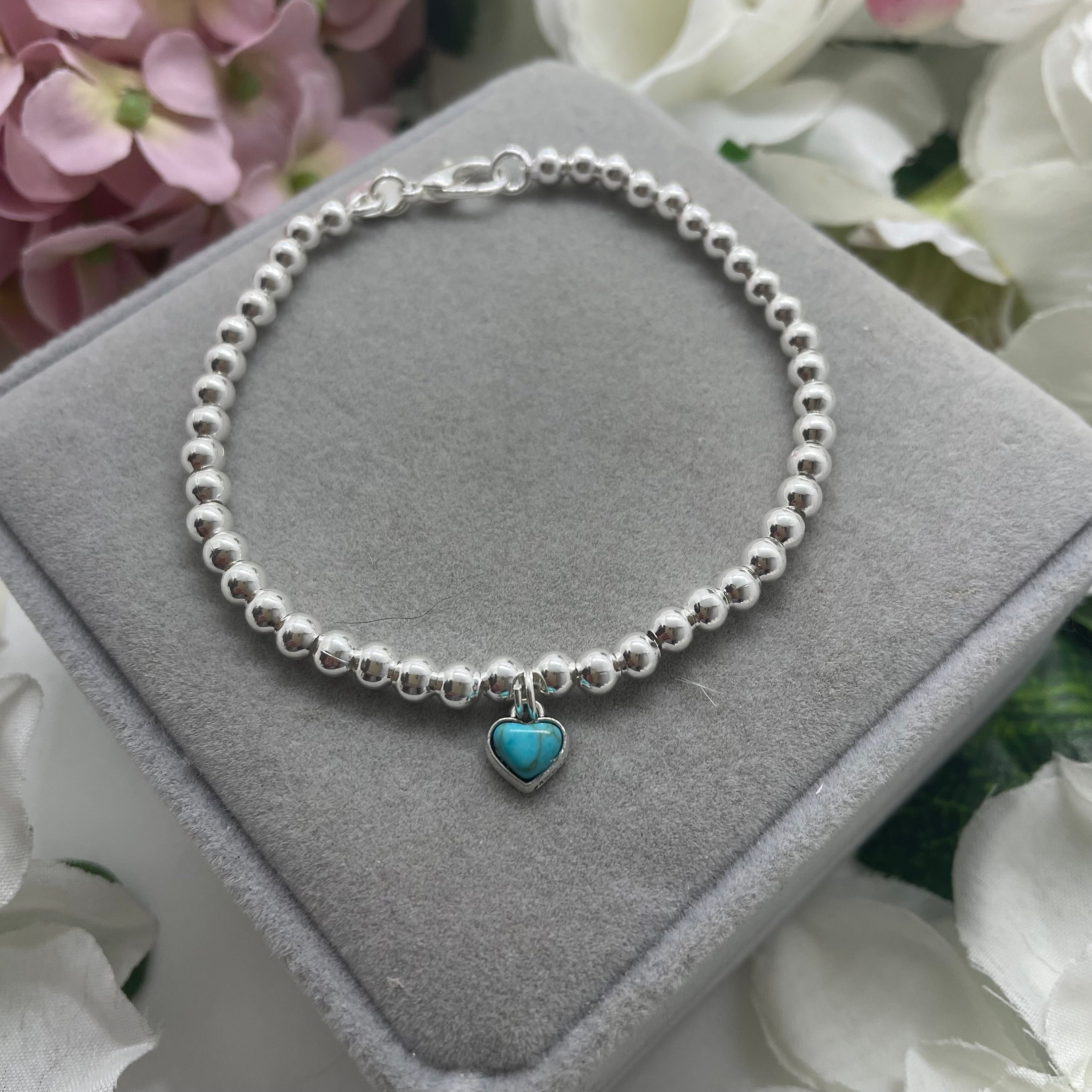 Sterling Silver Beaded Bracelet Beautiful silver bracelet with a turquoise heart charm attached. ( T...