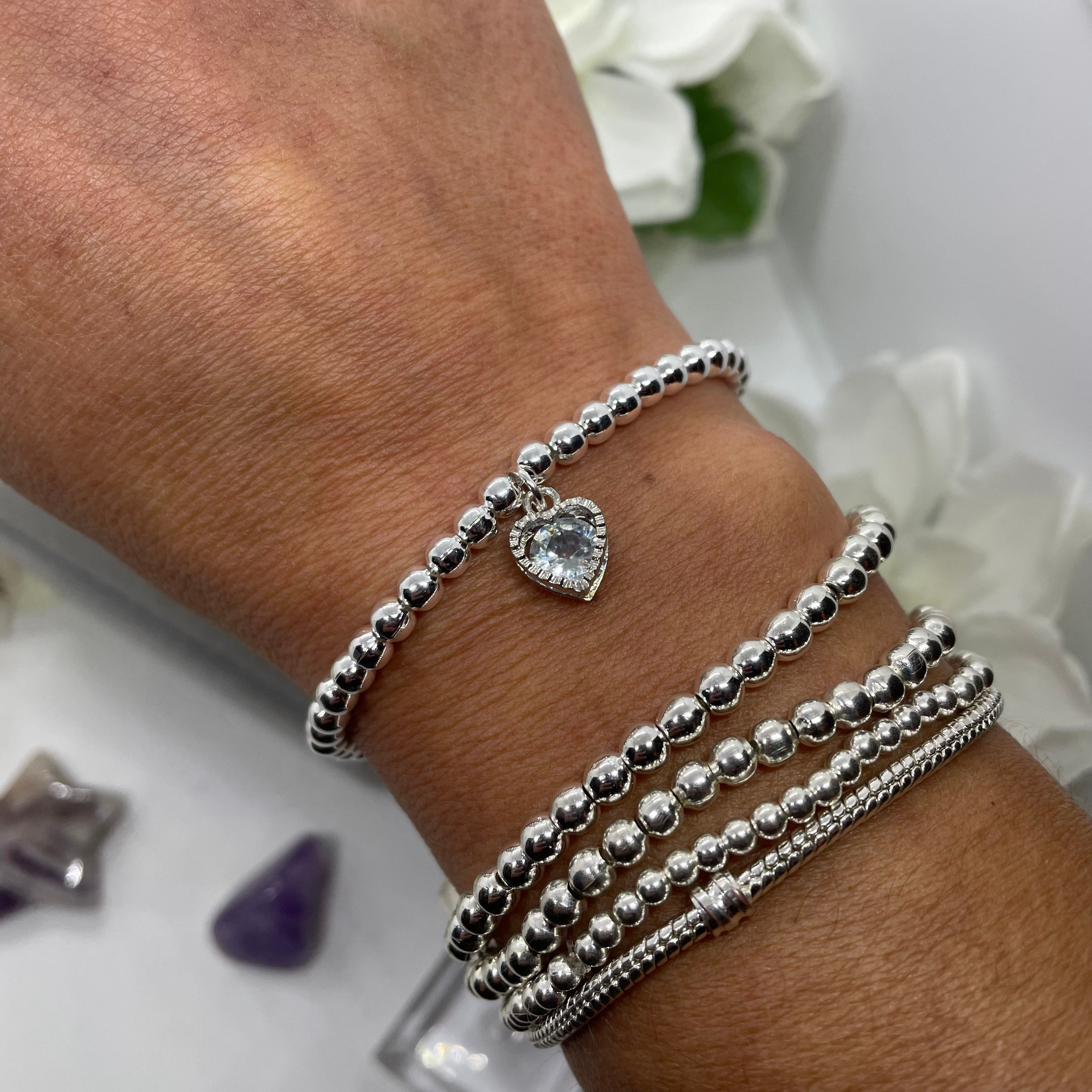Sterling Silver Beaded Stretch Bracelets, 6mm, 5mm, 4mm, 3mm, Sterl...