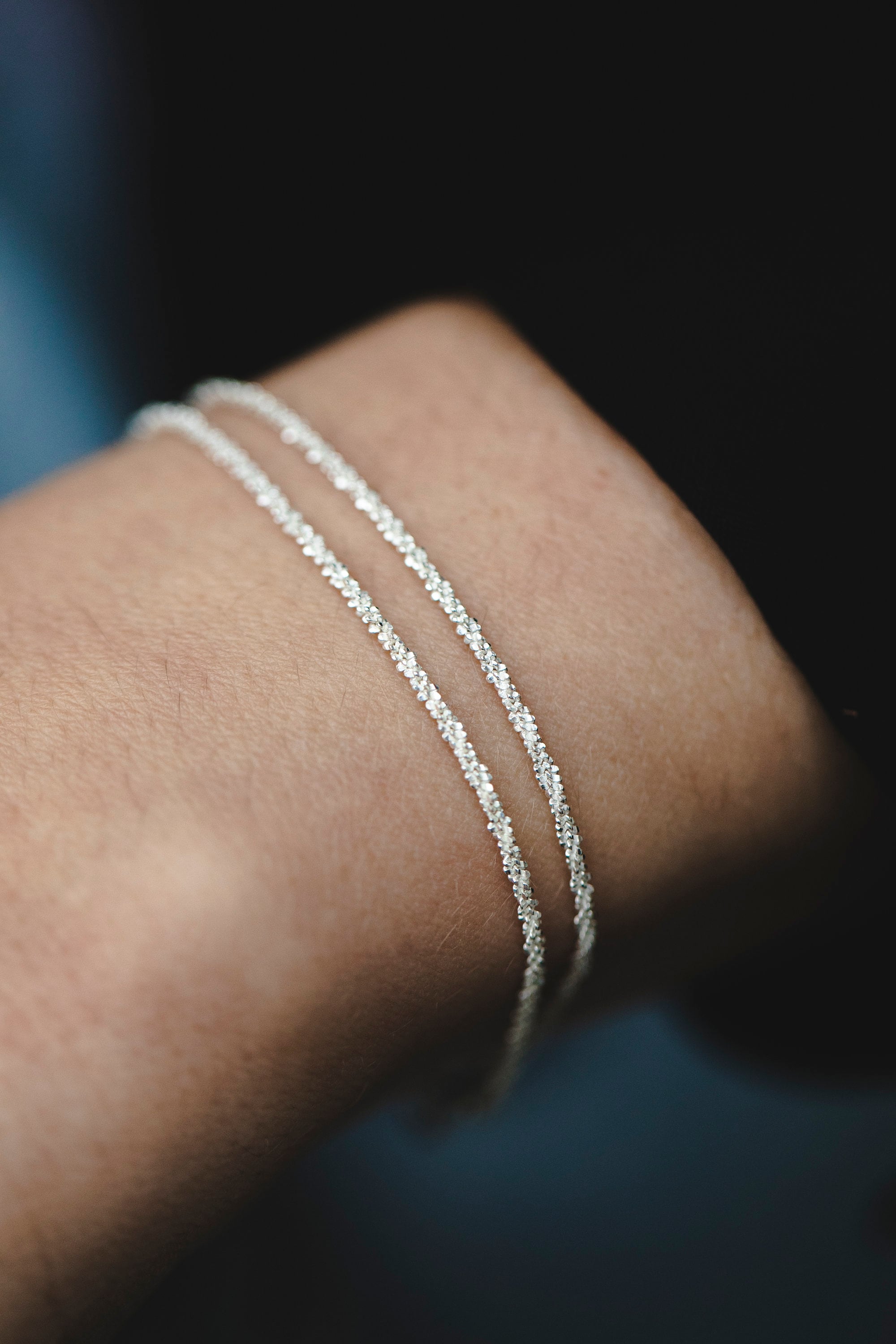 This layered double chain bracelet is handmade of sterling silver 925. It's great for stacking with ...