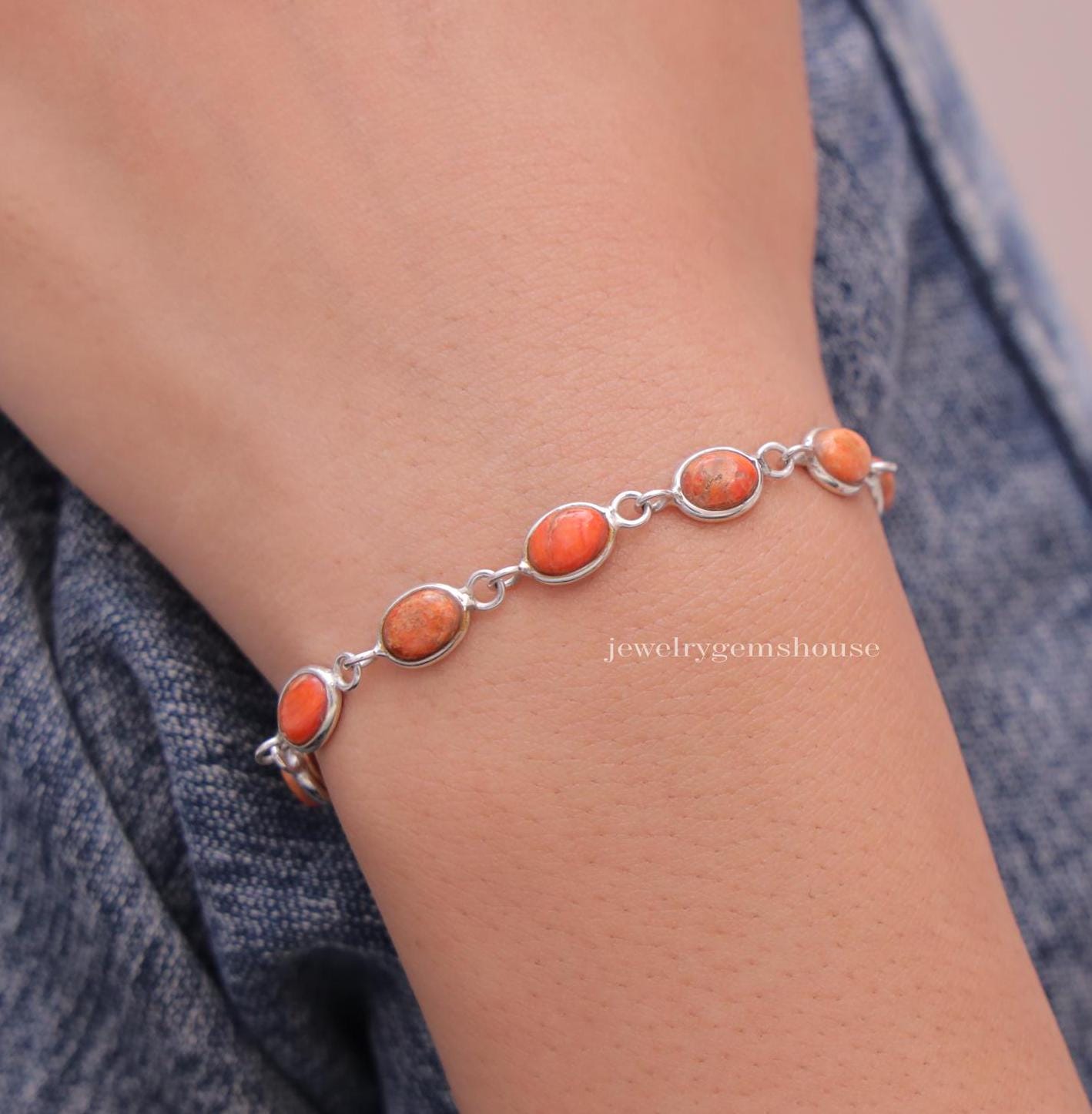 Sponge Coral Bracelet, 925 Solid Sterling Silver Bracelet, Women Si...