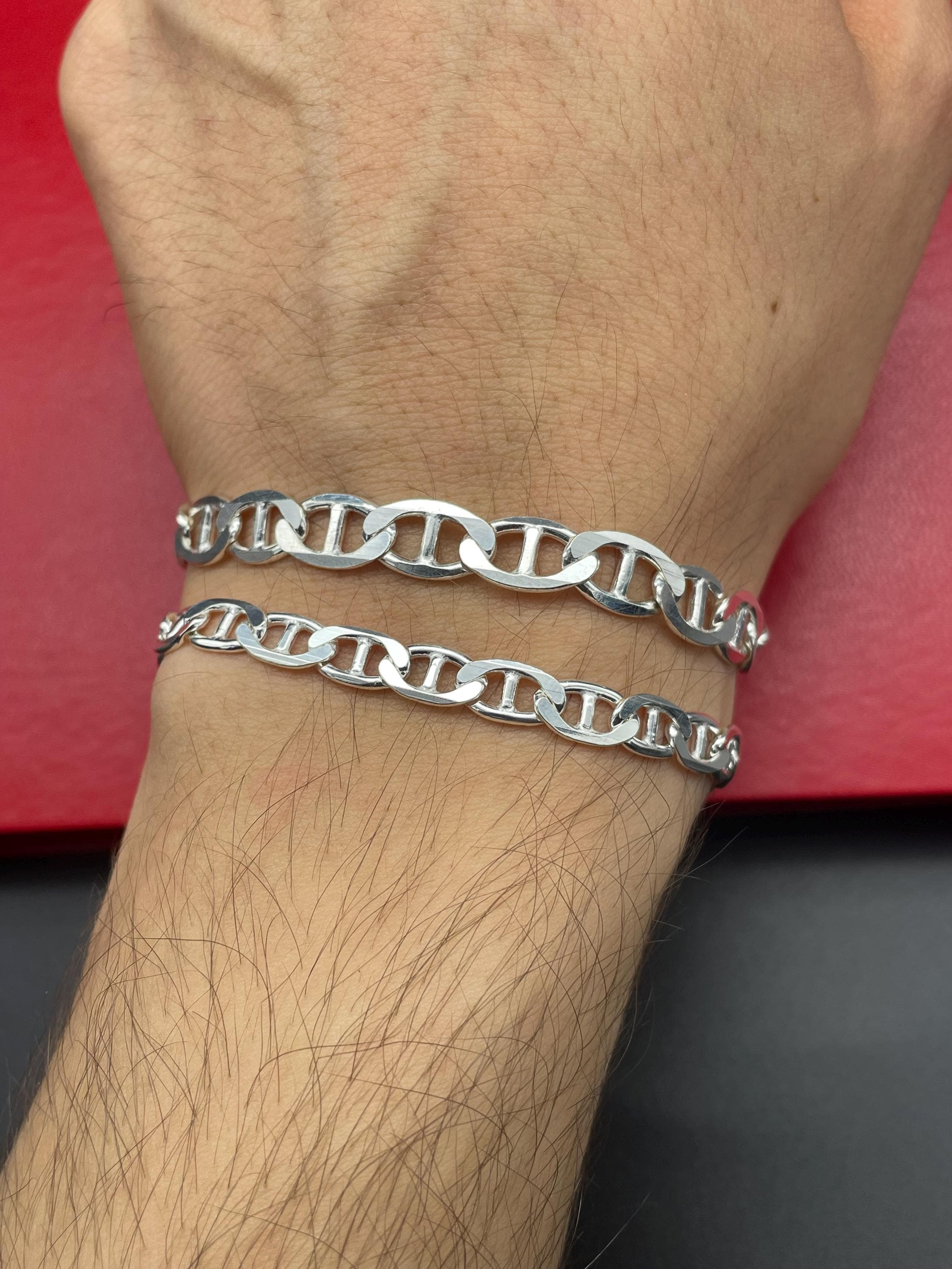 Mens Silver Bracelet-Sterling Silver 925-Chain Link Bracelet-Chain ...