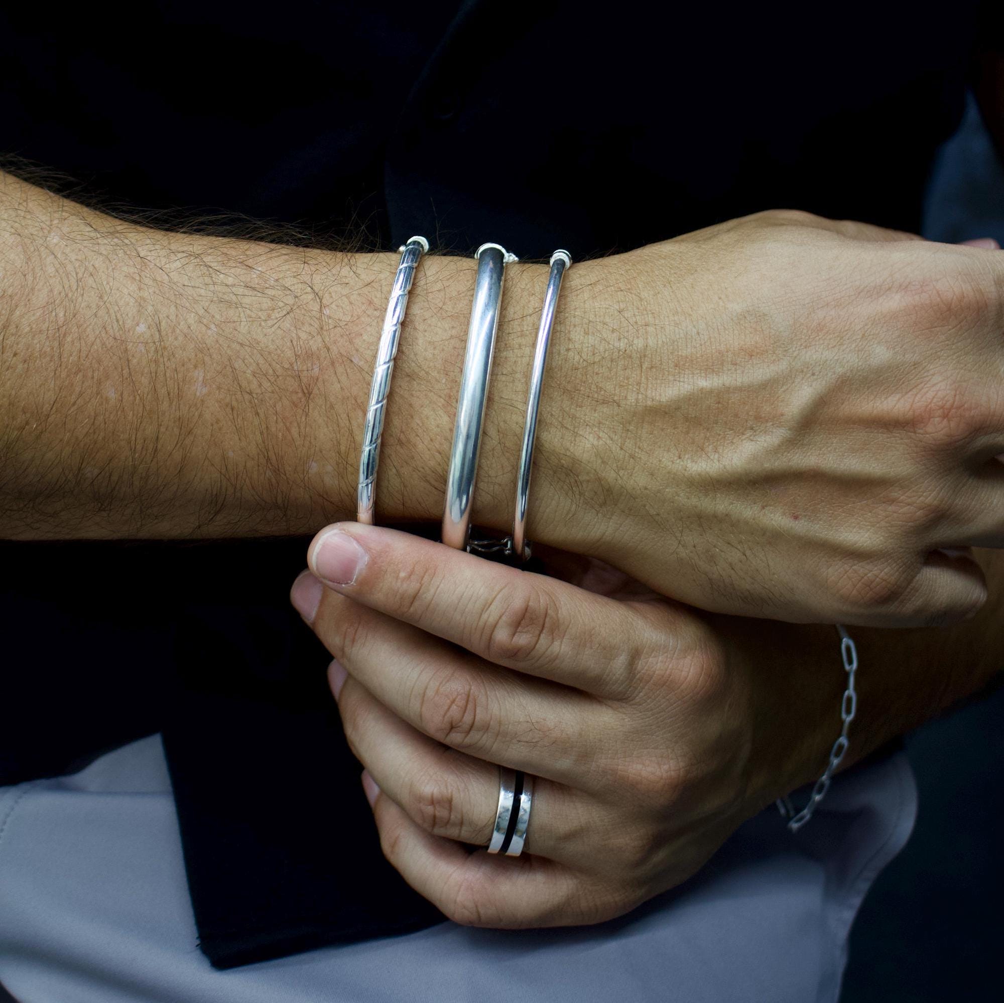 Men Silver Bracelet, Men Cuff Bracelet, Men Metal Bracelets, Men Si...