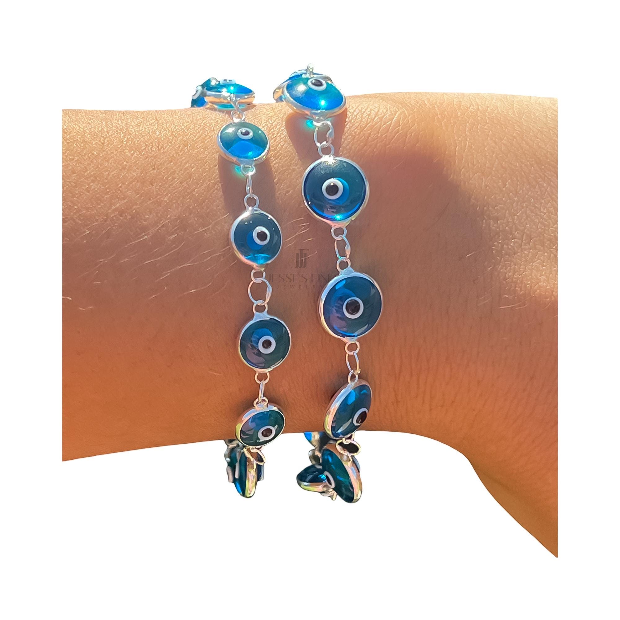 Evil Eye Bracelet Silver Chain, Blue Evil Eye Bracelet, Evil Eye pa...