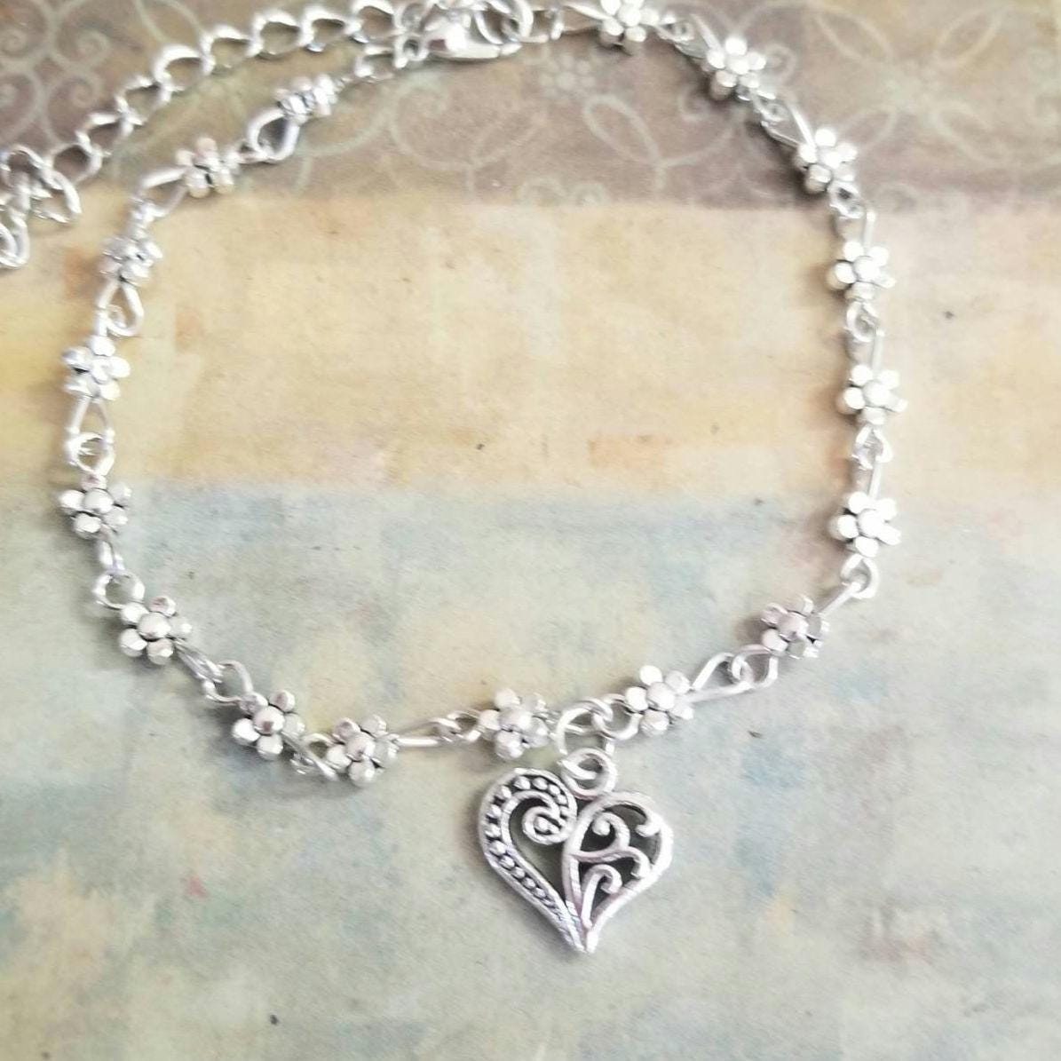 Heart Anklet, Silver Anklet, Sterling Silver Heart Anklet, Sterling...