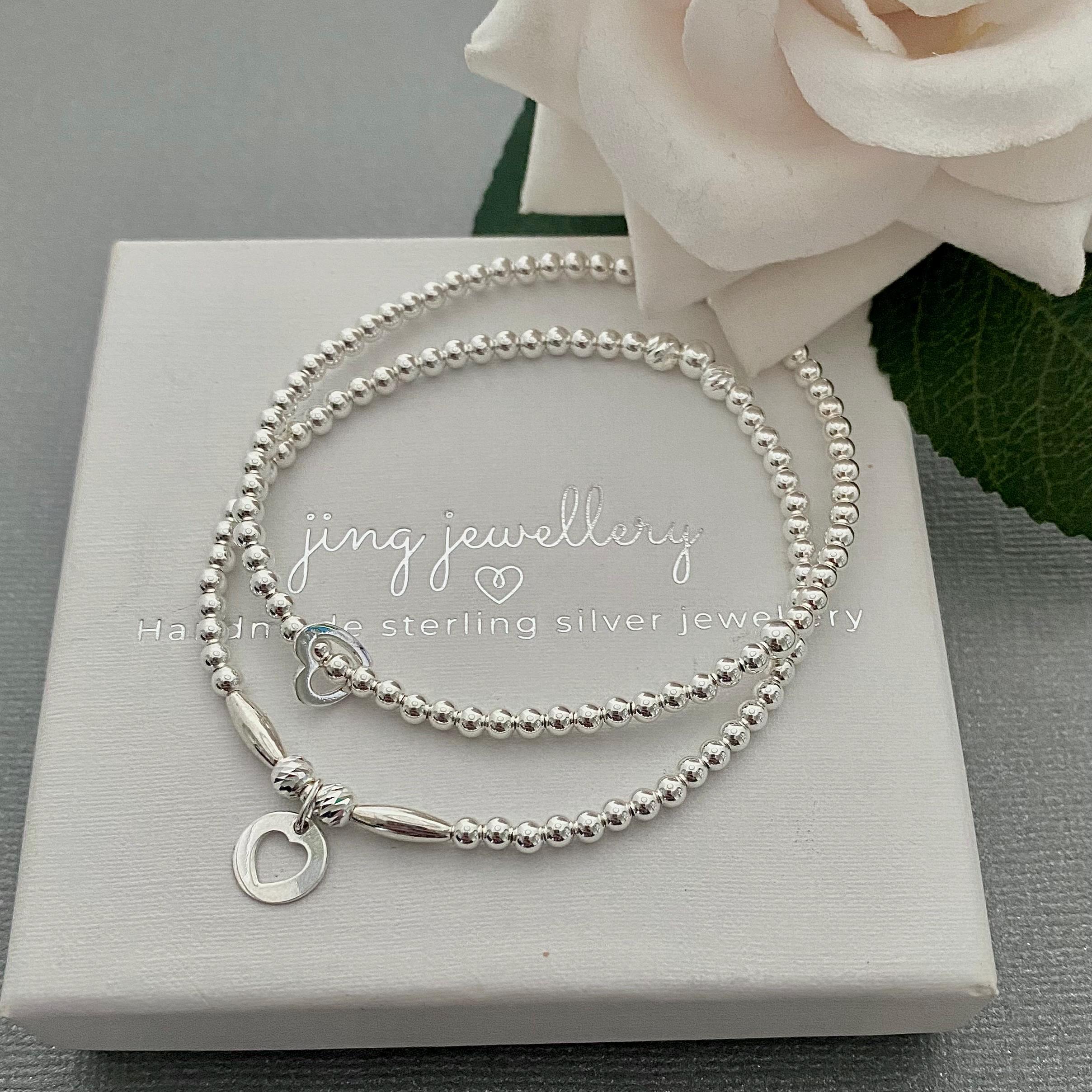 Pretty sterling silver beaded stretch stacking bracelets. Set of 2 bracelets, made using 3mm, 4mm an...