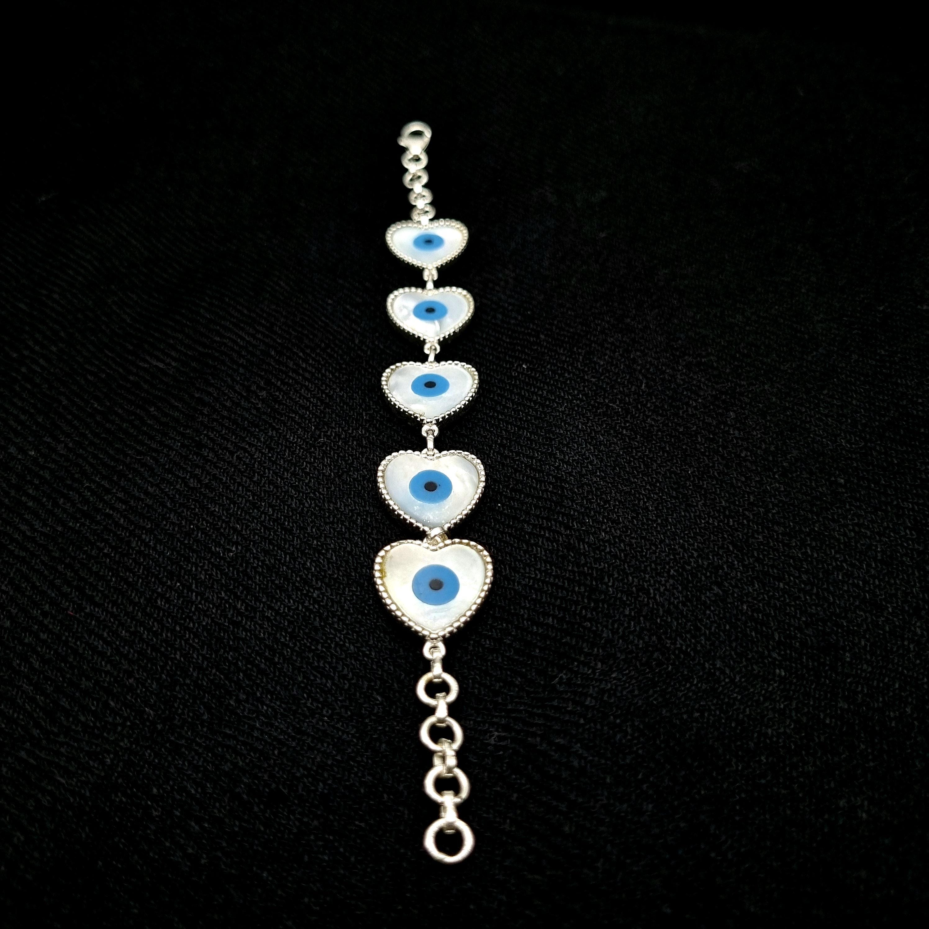 Sterling Silver Heart Bracelet, Evil Eye Bracelet, Heart Jewelry, E...