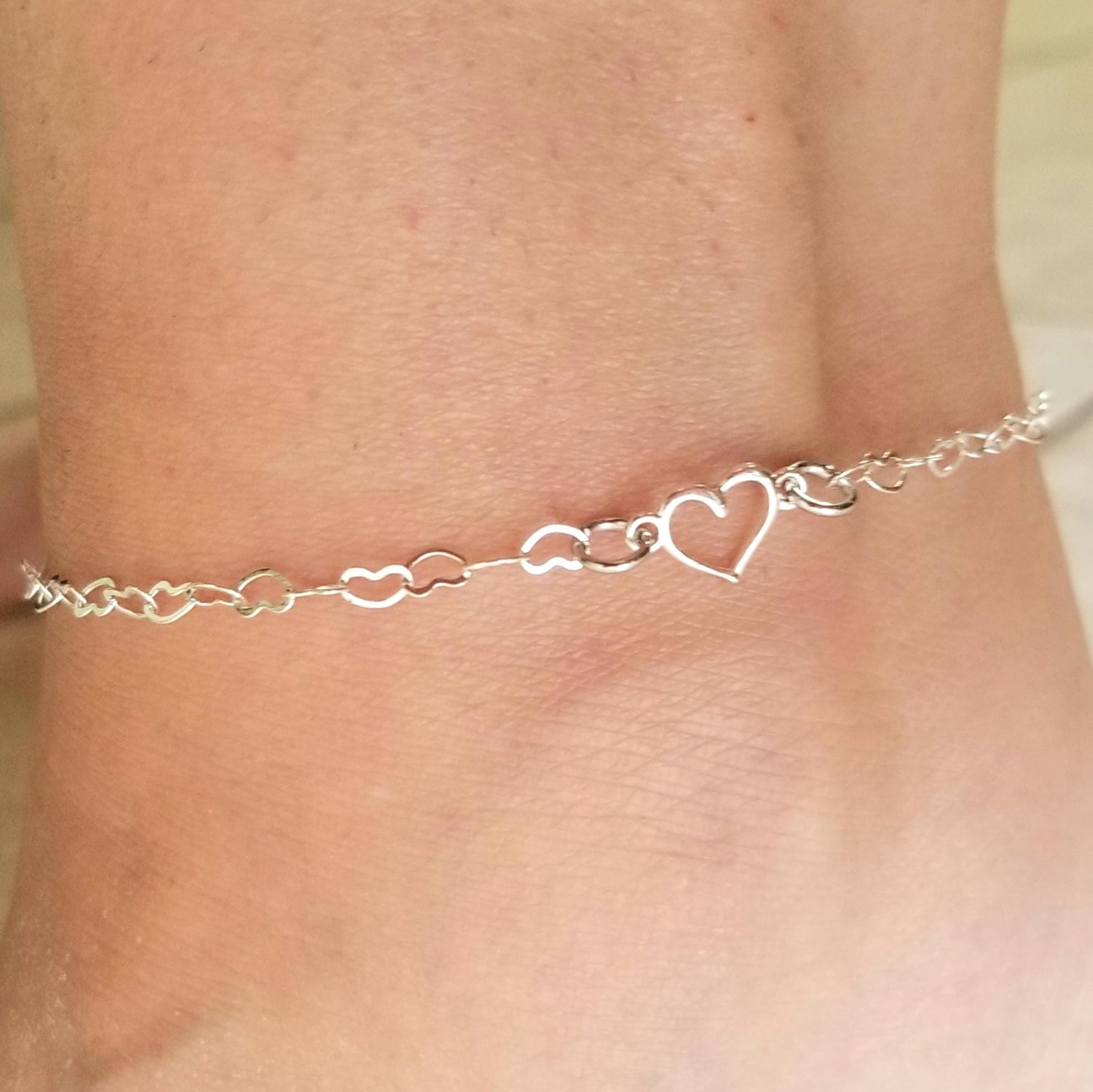 Heart Anklet, Silver Anklet, Sterling Silver Heart Anklet, Sterling...