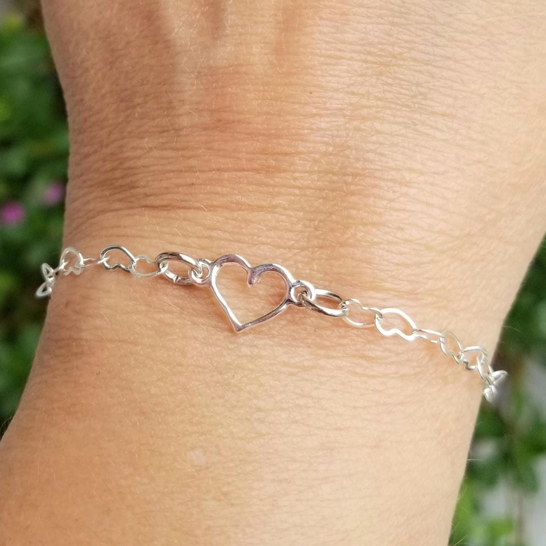Sterling Silver Heart Link Bracelet, Silver Heart Bracelet, Silver ...