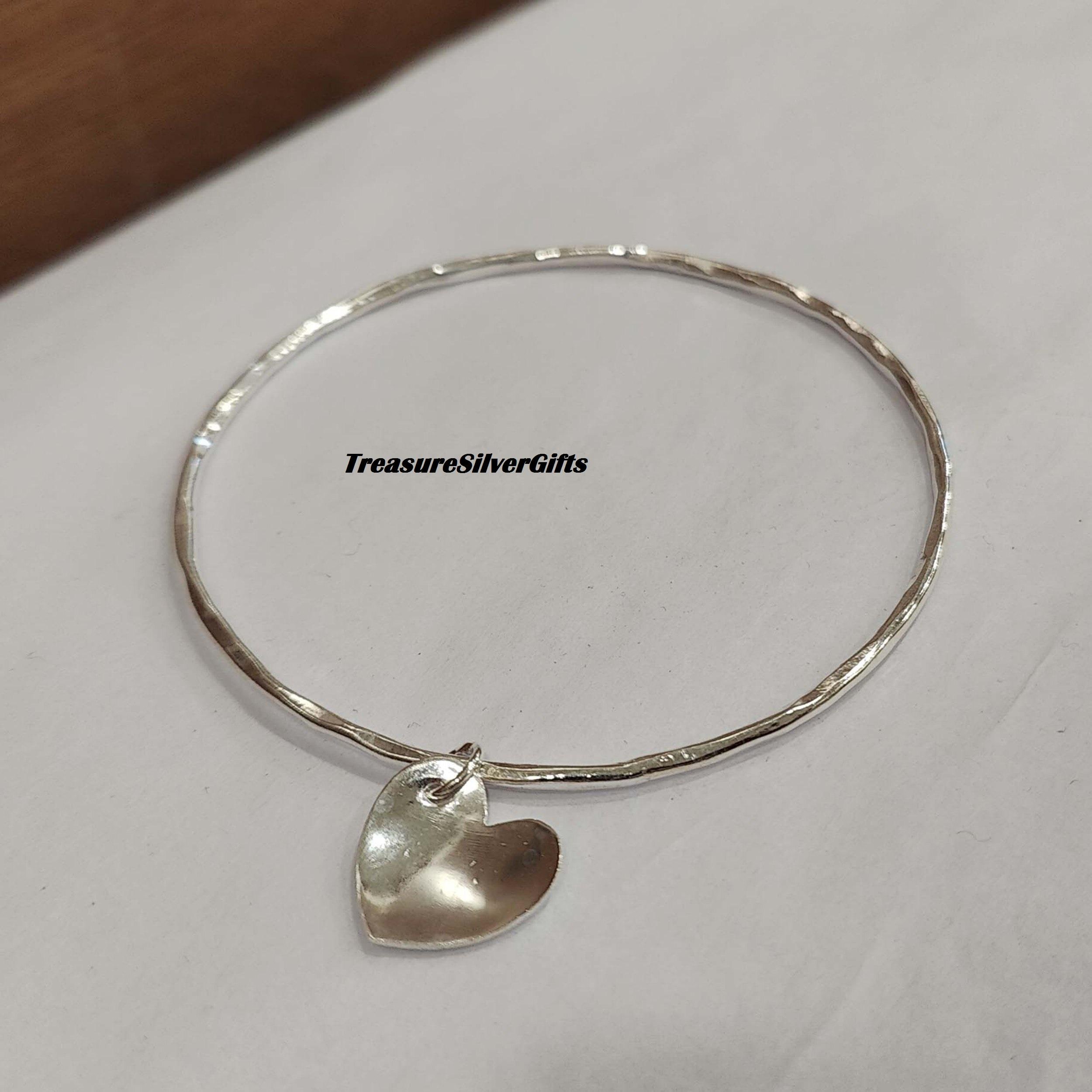 Sterling Silver Heart Bangle, Sterling Silver Bangle with a Silver ...