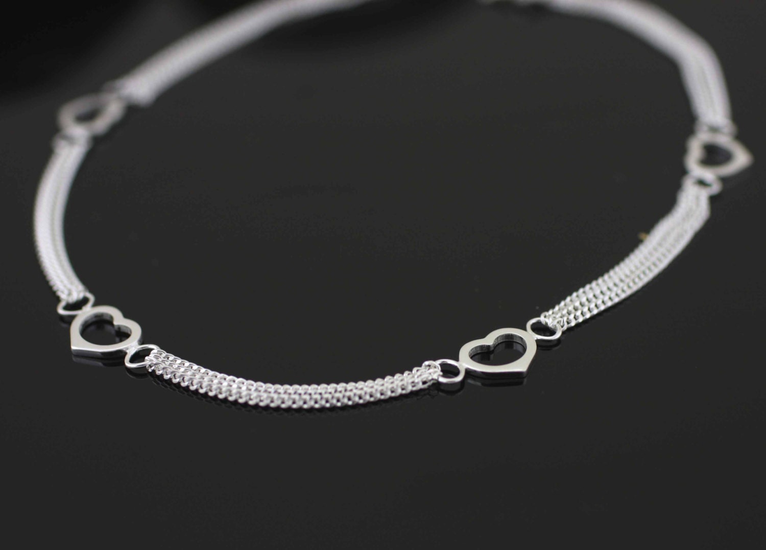 "Beautiful and Modern Sterling Silver Ankle Bracelet With Open Heart from a Triple chain and a ...