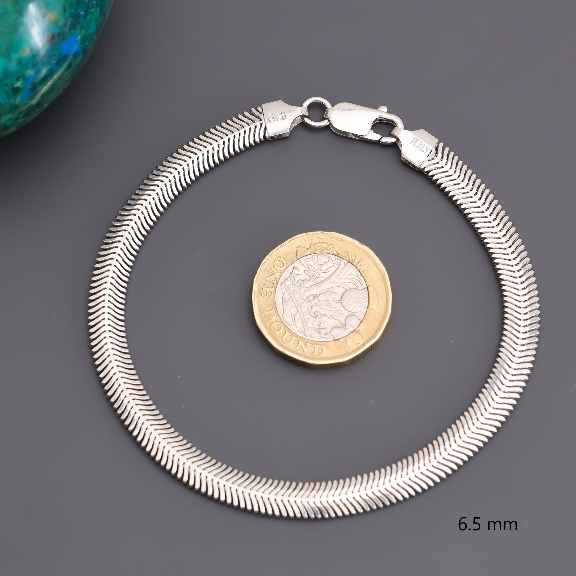 "Brand New Sterling Silver HerringBone Magic Flat Snake Chain 6mm Width Bracelet, Anklet: 7'' 8...