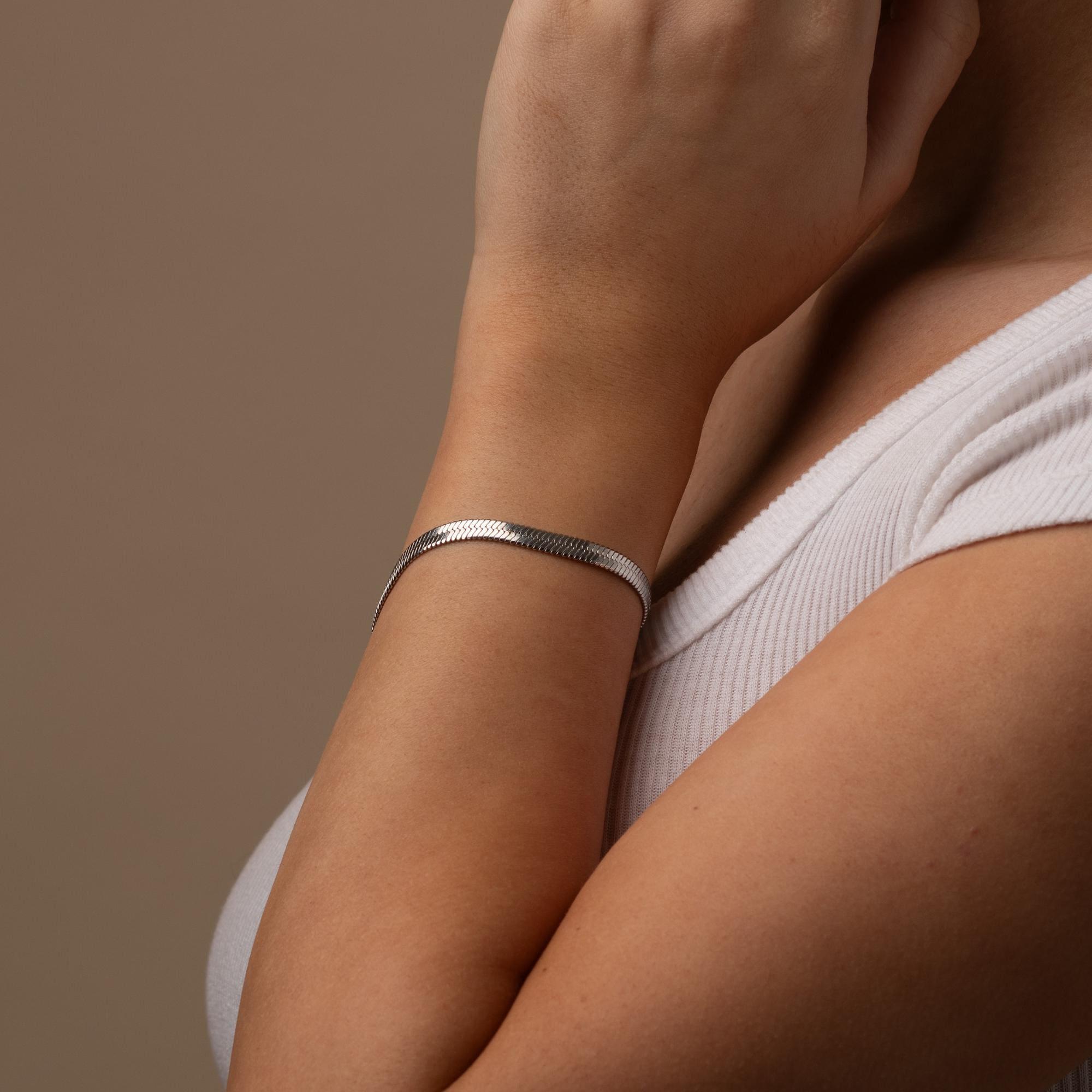 Silver Herringbone Chain Bracelet, Snake Chain Bracelet, Simple Eng...