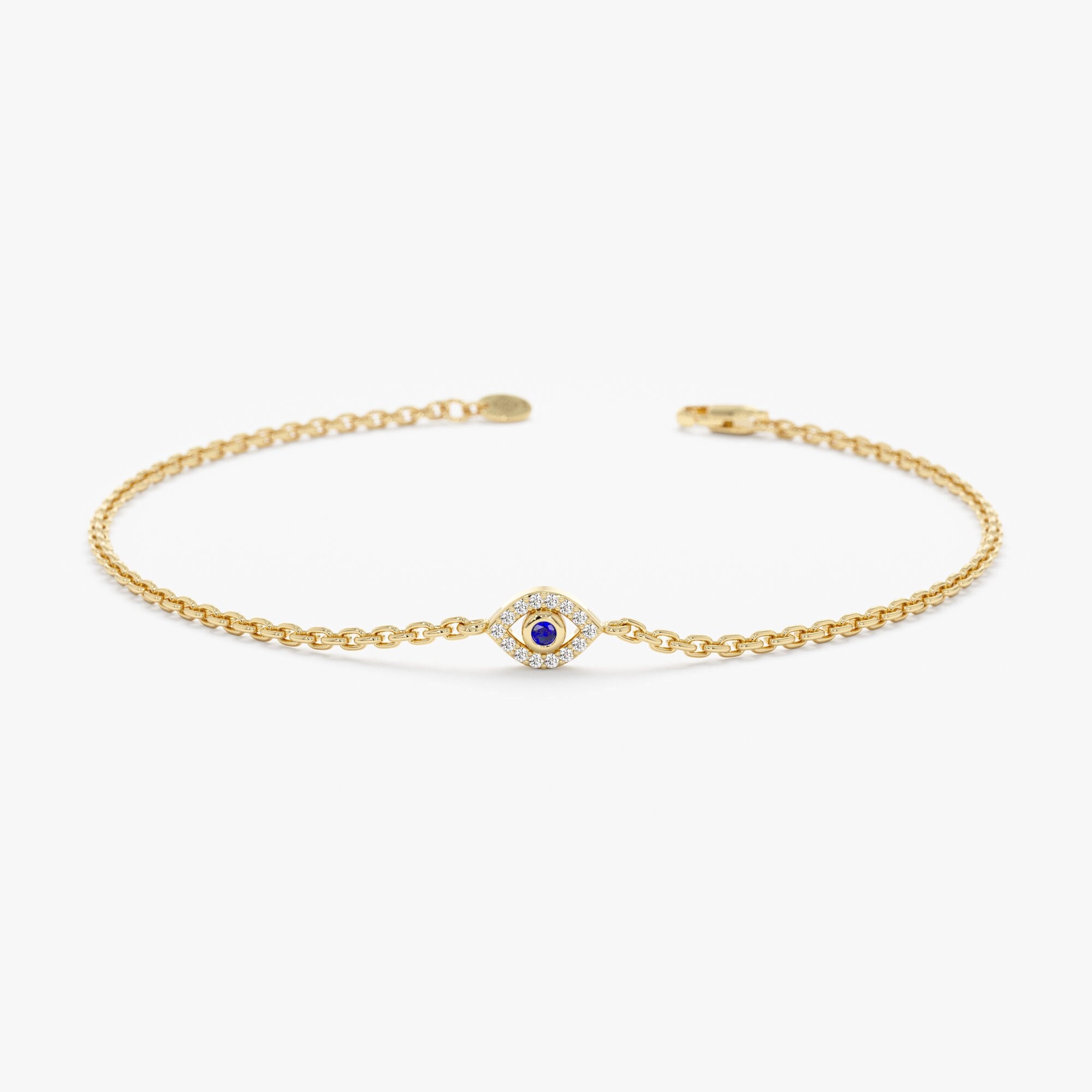 Mini Diamond Evil Eye Bracelet, Solid Gold Diamond Lucky Eye Bracel...
