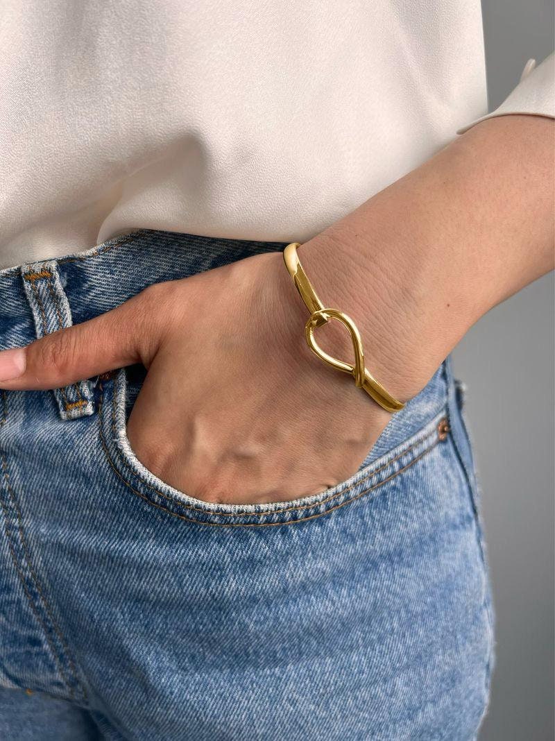 A personalised 18k gold vermeil bangle, handcrafted in London -- an elegant gift for birthdays or an...