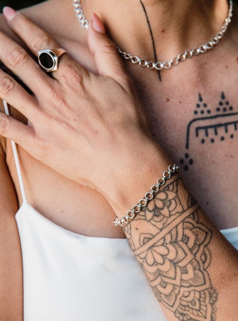 Circle Link Bracelet/ Hoop Silver Bracelet/ Rings Silver Bracelet/ ...