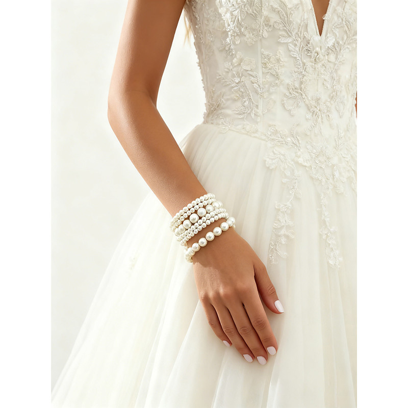 Women's Elegant Pearl Multi-Layer Bridal Bracelet - Faux Pearl Bead...