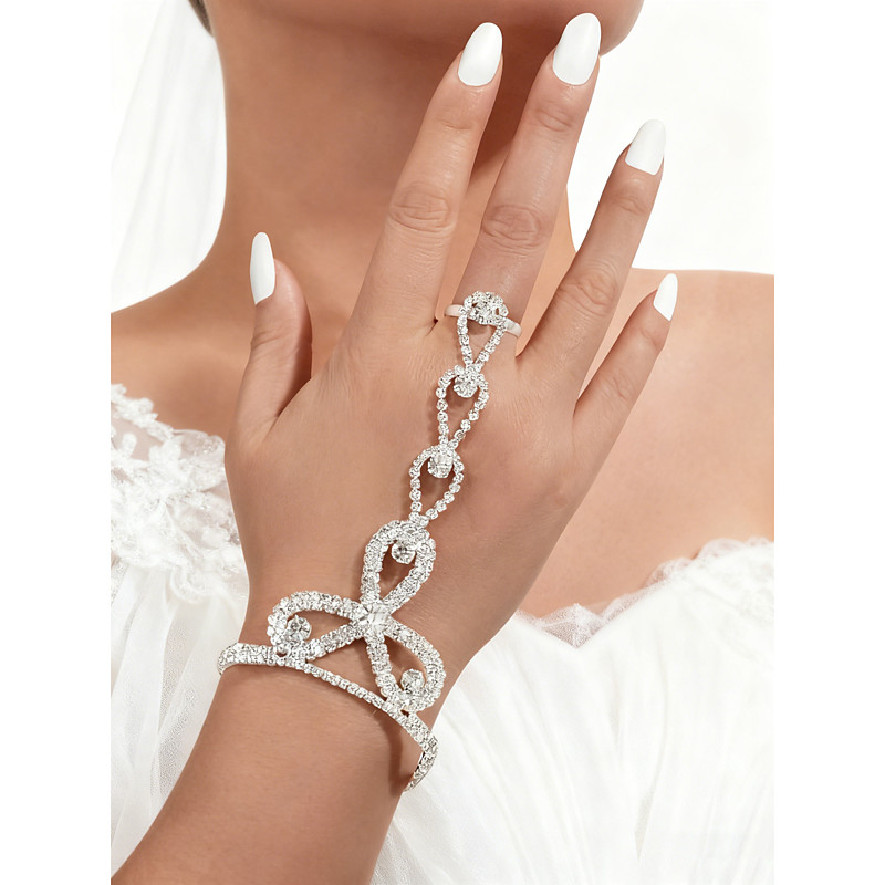 Women's Rhinestone Bridal Hand Chain Bracelet with Ring - Sparkling...